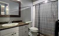 Enjoy the ease of main floor living with direct access. Both bedrooms are generously sized and conveniently located at opposite ends of the unit. The full bathroom is clean and functional, complemented by in-suite laundry for added convenience.