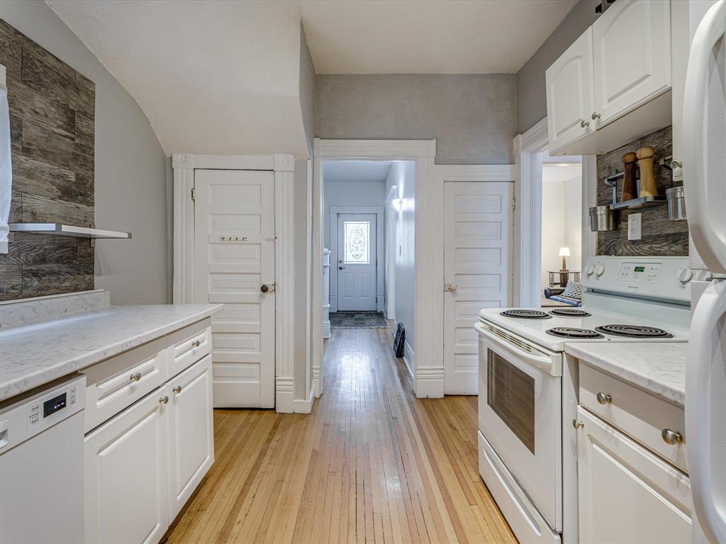 showings start Oct. 19 – Offers Oct. 27** Welcome to the perfect Wolseley family starter home! This charming 4-Bed, 2-Bath character home is full of warmth, space, thoughtful updates, featuring original wood floors, cozy carpet. Welcoming foyer opens to bright Living and Dining Rooms with large PVC windows that fill the space with bright natural light. The kitchen includes a dishwasher and stylish LVL backsplash—ready for all your culinary needs.Opens onto large deck, private yard. Dining room with period ornamental fireplace. Second floor offers 3 good-sized Bedrooms, 4-piece Bath. Upper primary BR awaits, along with a large landing—ideal for a home office or reading nook. Treat yourself in the beautifully remodelled 3-piece bath (2023); deep soaker tub + heated tile floors. Enjoy the classic front porch or entertain on the back deck—perfect for summer evenings. The backyard features freshly turned soil, ready for next spring’s garden. Updates include PVC windows, washer (2021), dryer (2020), HWT (2020), impact-resistant shingles and dormer siding (2017), basement drywall (2025), and south fence (2024). The basement offers storage, laundry, utilities, and 100AMP panel. A must-see!