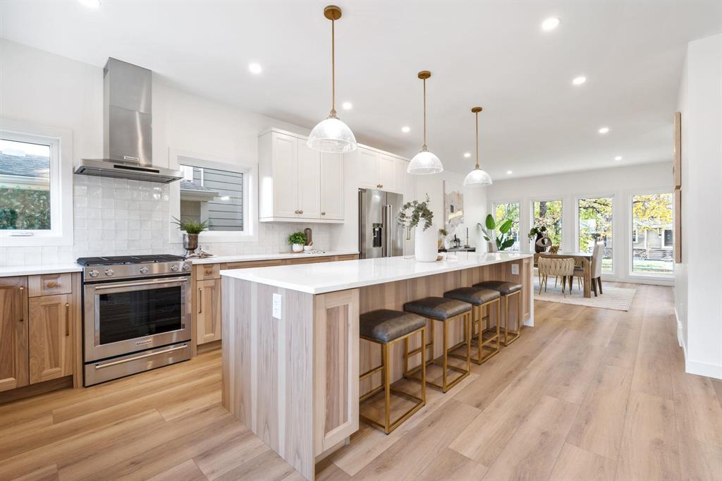 Welcome to 417 Beaverbrook, a custom-built masterpiece in the heart of River Heights. Offering 2,184 sq. ft., 3 bedrooms, and 2.5 baths, this home blends timeless elegance with modern design. The grand foyer with soaring ceilings leads to an open-concept main floor where a chef’s dream kitchen features custom cabinetry, a quartz waterfall 9 ft island and premium finishes throughout. The expansive dining and living areas create the perfect setting for both entertaining and everyday living. Upstairs, a stunning open-to-below loft adds versatility for a home office or reading area, while the primary suite impresses with a spa-inspired ensuite, double vanity, soaker tub & a custom tiled glass shower + a huge walk-in closet. Two additional bedrooms and a 4-piece bath complete the upper level. Outdoors, fully landscaped front to back & enjoy a private, low-maintenance yard with deck and an oversized double detached garage. Just steps from the city’s top schools, cafes, dining, and entertainment, this residence delivers the finest in location, design, and lifestyle. With its custom craftsmanship and elevated finishes, 417 Beaverbrook is River Heights, redefined.