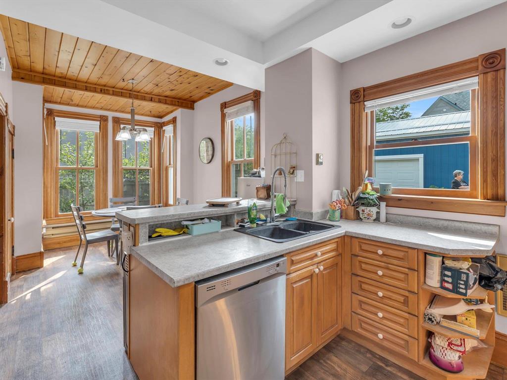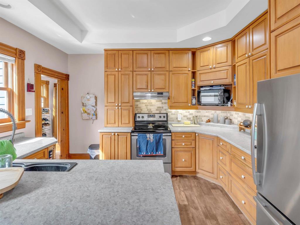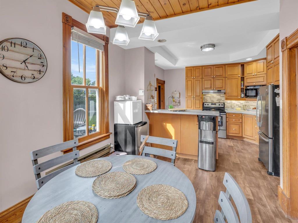 Offers presented as received. West House is not a Registered Heritage home. Welcome to this beautiful Queen Anne-style home that perfectly combines classic charm with modern updates. Nestled in a friendly neighborhood, this house is a true gem waiting for you to call it home. This home was built for Captain Charles H West by Robert Moncrieff and Frank Wright in 1888. There are so many gorgeous touches that have been added to this home, including a number of stained glass windows and a Vermont Castings fireplace. While the wood trim and staircase are original, tasteful updates have been made, including the kitchen, laundry room floor, and bathroom floor redone with vinyl ('25). Updates to the home include updated plumbing('24), hot water tank('22), shingles ('25), AC/Heat Pump ('25), dishwasher ('25), dryer ('25), and 200 amp service. Outside, you will find a low-maintenance 22 x 35 ft. detached garage(built in '19) with 10 ft. ceilings, single side door, metal roof and siding, with a stone brick parking pad. Don't forget your large fenced yard, which is perfect for entertaining, your children to run around in, or your pets! Minutes to all amenities. This property is a must-see!