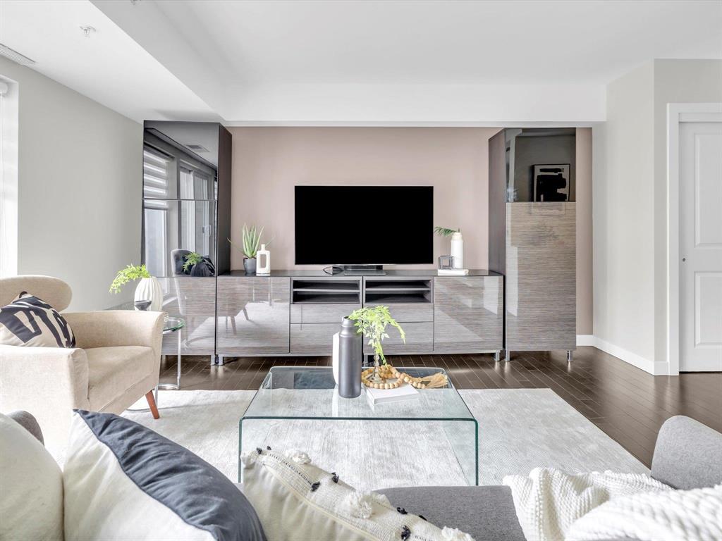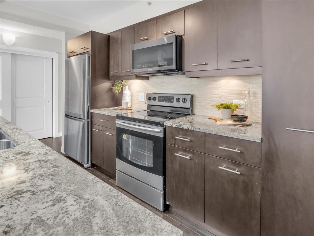 Large windows fill the space with natural light while offering stunning views, and the private balcony extends your living area outdoors. Both bedrooms are generously sized, with the primary featuring a walk-in closet. Additional highlights include in-suite laundry, ample storage including a walk in pantry, and premium building amenities such as a fitness center and secure underground parking.