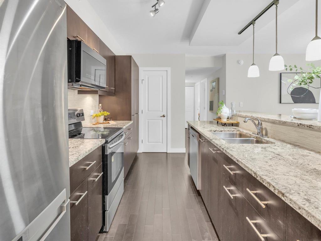 Open House Sunday October 26th 2-4pm. Offers reviewed on October 28th. Discover the modern elegance of sought after Linden Ridge, in this 1002 square foot luxury condo featuring two spacious bedrooms and a beautifully appointed full bathroom. Designed for comfort and style, this open-concept home offers high-end finishes throughout — from sleek flooring and designer lighting to custom cabinetry and stone countertops. The contemporary kitchen flows seamlessly into the dining and living areas, perfect for entertaining or relaxing in style.