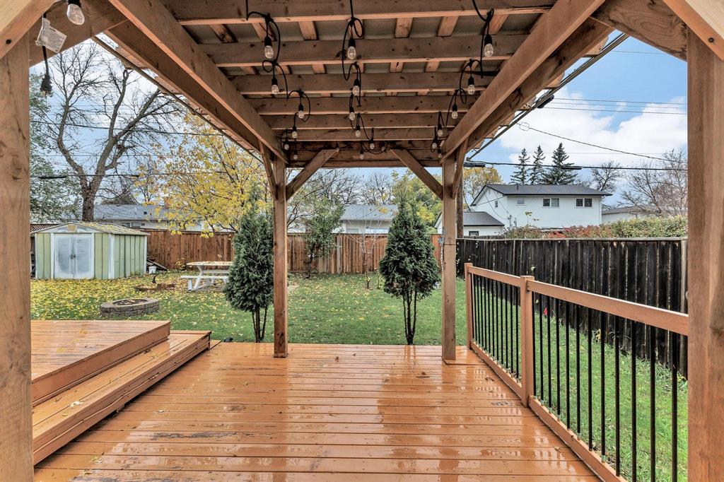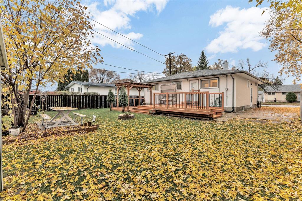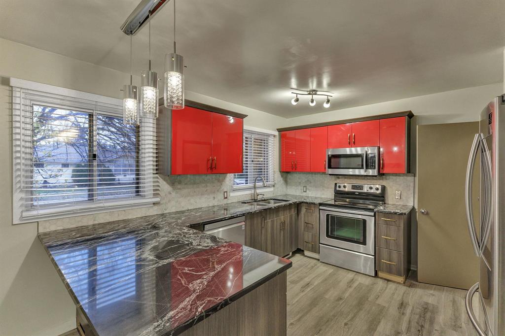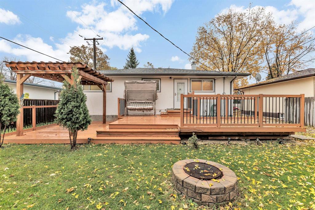 Offers as received - Fantastic 1,062 sqft updated bungalow in sought-after Heritage Park! Step inside to a bright, open-concept layout featuring a spacious modern kitchen with loads of cupboards, plenty of pantry space with pull-out drawers, quartz countertops, stainless steel appliances, and a breakfast bar — perfect for anyone who loves to cook or entertain. The large living room with its beautiful picture window fills the space with natural light and warmth, while engineered hardwood floors throughout adds a sleek, modern touch. The primary bedroom offers great space and comfort, accompanied by two additional generous bedrooms and a 4-piece bath. Head downstairs to a fantastic lower level boasting a huge rec room, two large bedrooms, laundry area, and plenty of storage — ideal for guests, teens, or a home office setup. Outside, enjoy the spacious fenced backyard complete with a deck and pergola — perfect for BBQs, relaxing evenings, or gathering with friends. Conveniently located near shopping, schools, transportation, parks, and so much more!