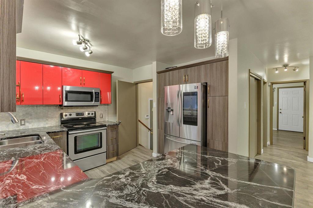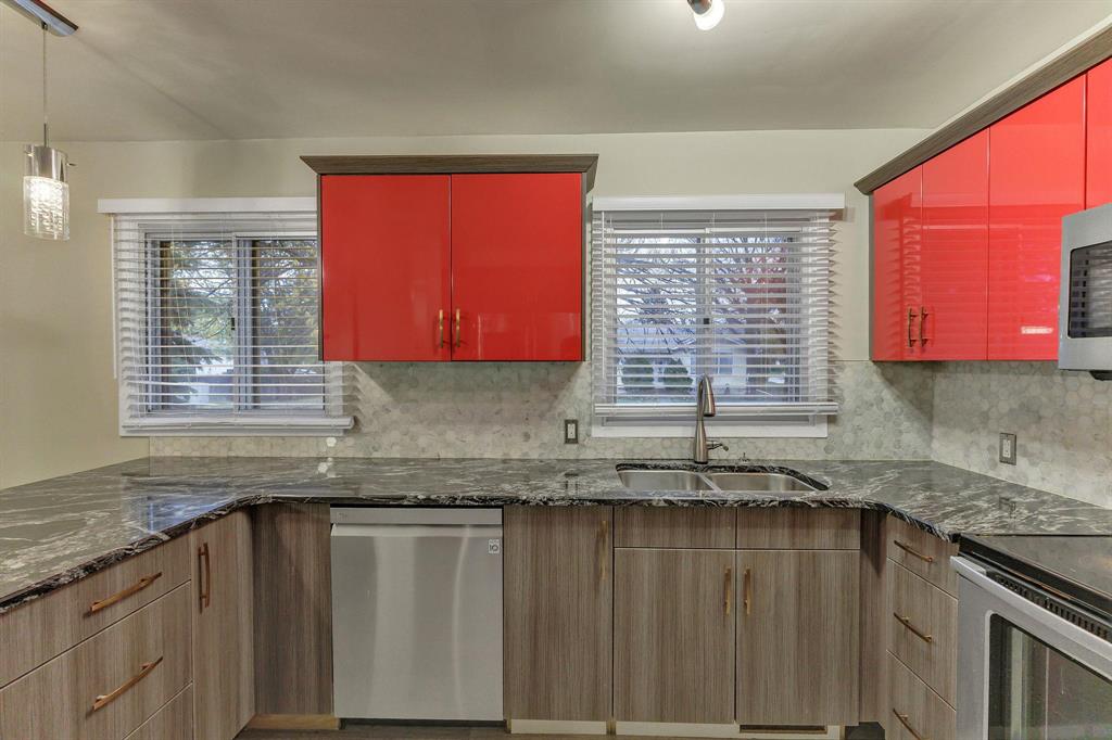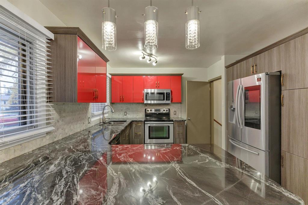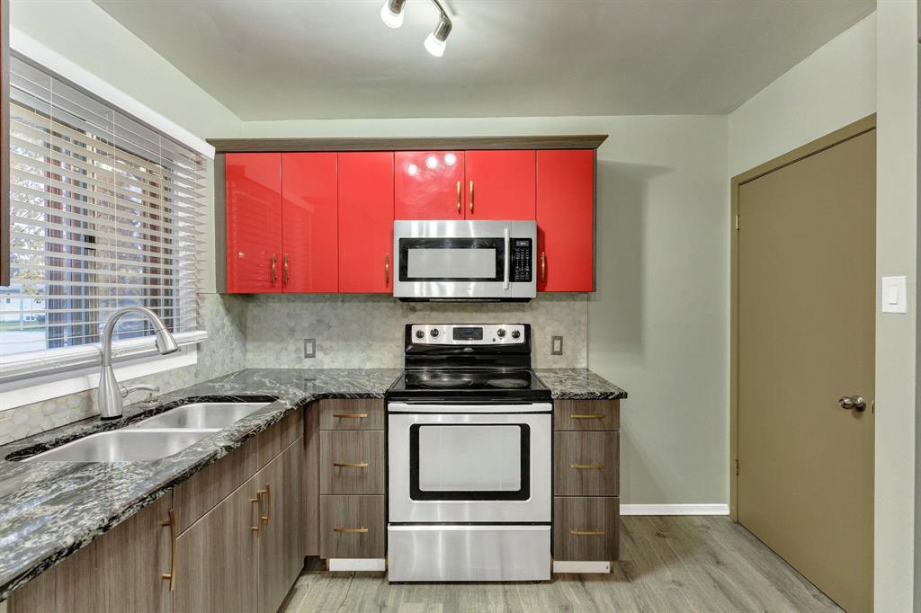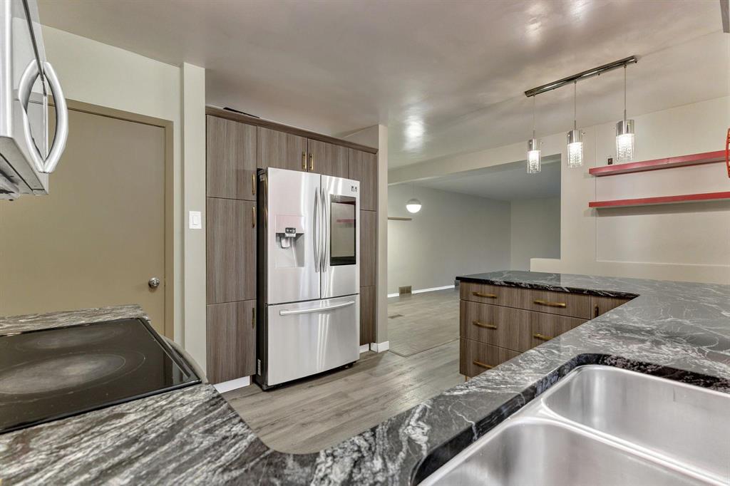 Offers as received - Fantastic 1,062 sqft updated bungalow in sought-after Heritage Park! Step inside to a bright, open-concept layout featuring a spacious modern kitchen with loads of cupboards, plenty of pantry space with pull-out drawers, quartz countertops, stainless steel appliances, and a breakfast bar — perfect for anyone who loves to cook or entertain. The large living room with its beautiful picture window fills the space with natural light and warmth, while engineered hardwood floors throughout adds a sleek, modern touch. The primary bedroom offers great space and comfort, accompanied by two additional generous bedrooms and a 4-piece bath. Head downstairs to a fantastic lower level boasting a huge rec room, two large bedrooms, laundry area, and plenty of storage — ideal for guests, teens, or a home office setup. Outside, enjoy the spacious fenced backyard complete with a deck and pergola — perfect for BBQs, relaxing evenings, or gathering with friends. Conveniently located near shopping, schools, transportation, parks, and so much more!