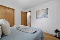 SS Now | Offers as received | Welcome to this beautifully upgraded bungalow tucked away on a quiet cul-de-sac in Windsor Park! Step inside and be impressed by the open-concept layout featuring gleaming hardwood floors, a bright living room with a large bay window, and a gorgeous oak kitchen with brand-new stainless steel appliances, Corian countertops, and a breakfast bar perfect for casual dining. The main floor offers three spacious bedrooms and a 4-piece bathroom with a clean finish. Downstairs, the fully renovated basement provides even more living space with a cozy electric fireplace in the rec room, a dedicated office area, an additional bedroom for guests, and a full bathroom as well as a finished laundry room. Outside, enjoy your private, fully fenced yard featuring a two-level deck, stone walkway, and direct park access—perfect for relaxing or entertaining. The double garage, workshop, and storage shed add exceptional functionality.