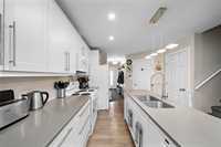 Step inside to discover 1,361 sq. ft. of living space across two levels. The main floor features a spacious galley-style kitchen with quartz countertops, ample cabinetry, and large island overlooking the dining area and cozy living room. Patio doors lead to your fenced backyard, perfect for relaxing or entertaining.