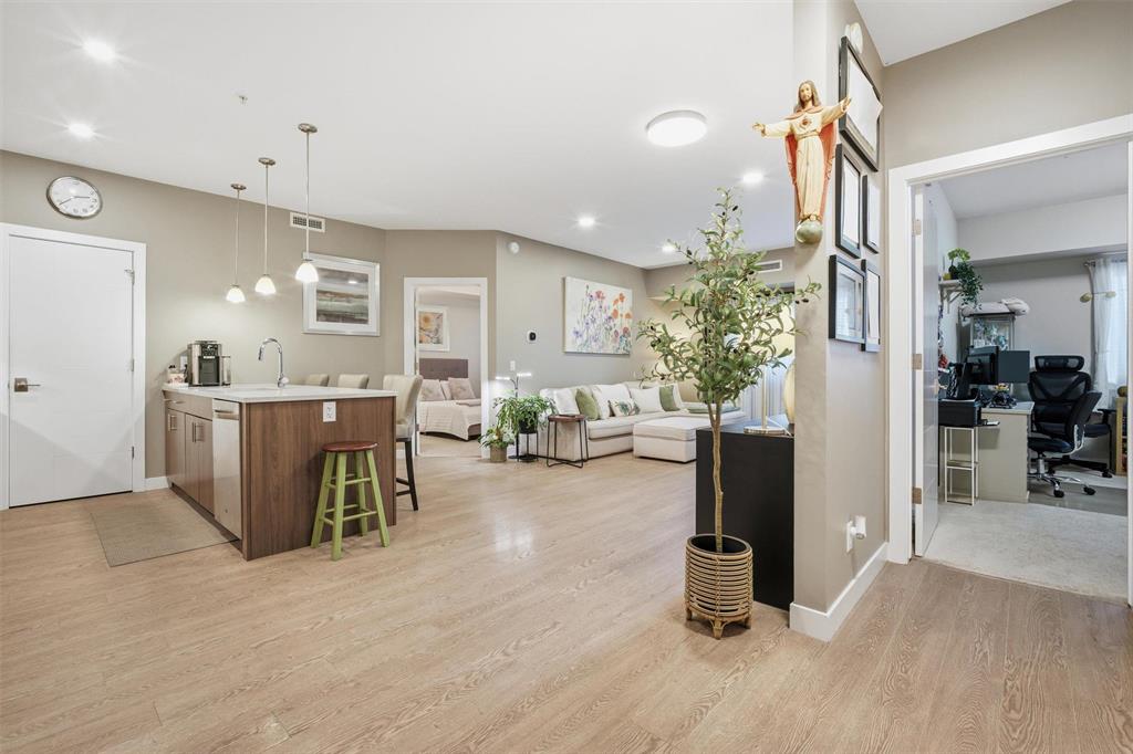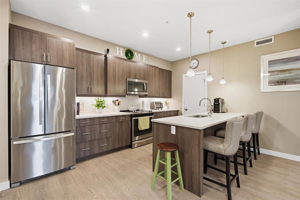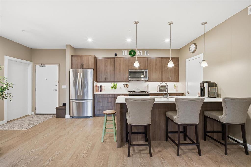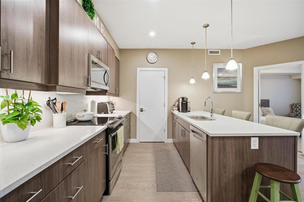 This stunning, impeccably maintained condo feels like new! Featuring beautiful laminate floors throughout the main living area and a gourmet kitchen with modern finishes, a large island, and pantry, this unit is designed for both comfort and style. The open-concept layout seamlessly connects the kitchen, dining, and living spaces, leading to a main floor patio—perfect for relaxing or growing your favorite plants. The spacious primary bedroom includes a walk-through closet and a private ensuite with a walk-in shower. A smart split-bedroom layout provides privacy, with the second bedroom and full bathroom located on the opposite side of the unit. Additional conveniences include in-suite laundry with extra storage, and a heated underground parking stall with a secure storage locker plus a 2nd outdoor parking spot. Enjoy a full suite of amenities in this well-managed building, including a fitness room, common area, and secure entry. Ideally situated near shopping, the St. Norbert Farmers’ Market, and scenic walking trails, this is a rare opportunity to own one of the best units in the complex.