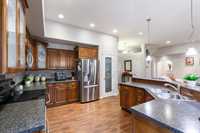 Beautiful family home on quiet street! This home has a inviting entrance, leading to the open concept living room, dining room, and kitchen. The living room features a gas fireplace with great views of the back yard. The dining room has a garden door to the large deck. The kitchen is huge and a dream come true- huge center island and lots of cupboard space! The main floor features 2 bedrooms. The primary suite has a spa - like ensuite bathroom with walk in shower and soaker tub! Walk-in closet. There is a garden door to the back yard, too! Main floor laundry. Moving downstairs, there is a spacious rec room, 2 bedrooms, bathroom with stand up shower, cold room, and utility room. There is a double attached garage, and detached garage. Patio and firepit area, treed yard, partially fenced, and more! Shingles 2020, newer vinyl plank on main floor, HWT, dishwasher, fridge, washer, dryer. Gas BBQ incl. Appliances included, C/A, C/vac, Stamped concrete driveway. Triple pane windows. Hurry!!