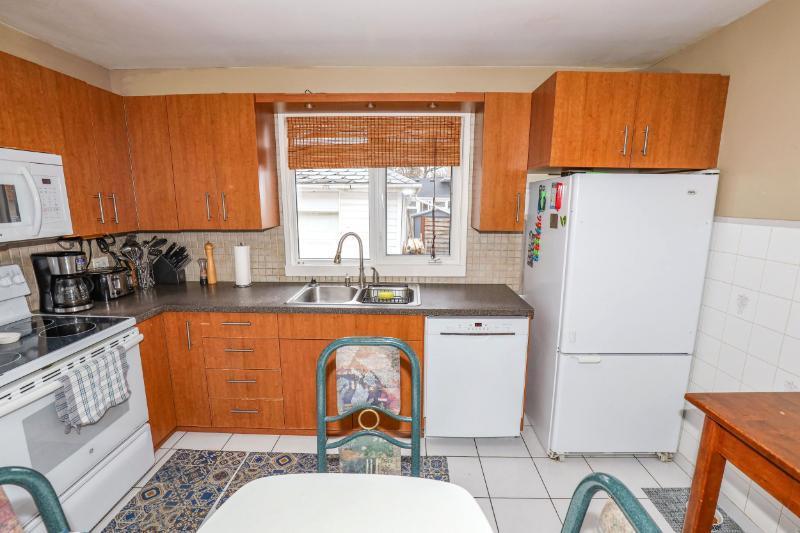 Newer large rear yard deck, fully fenced and very private. Over sized single detached garage with opener. All appliances included including built-in microwave-hood fan. The main level has a larger eat-in kitchen, spacious living room/dining area and 3 good sized bedrooms, 4 piece upgraded main floor bath. Fully finished spacious lower level level with den and upgraded 3 piece bath and laundry area/storage. This practical family home must be seen to appreciate. Alarm is not monitored and has never been used by current owner.