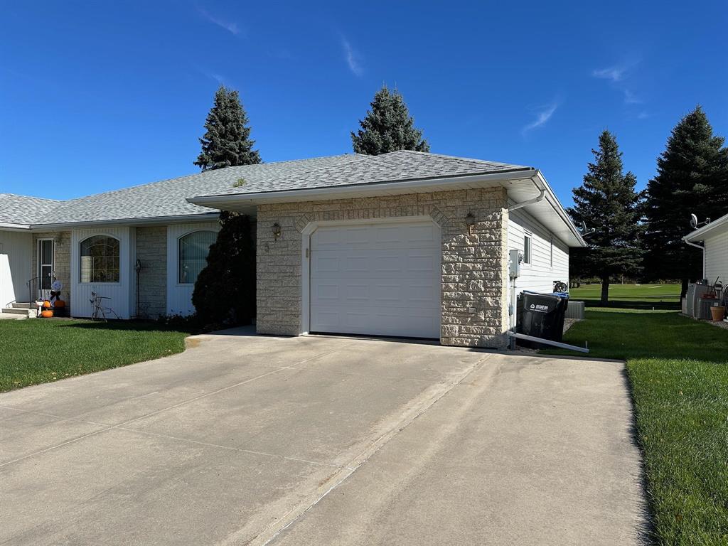 Dream location for golfers, retirees or anyone looking for a peaceful, relaxing place to call home! Quiet no-thru street and backing onto the 17th hole at Carman Golf Club. Enter into this well maintained bungalow filled with natural light and exceptional views. The front entry opens into the spacious open-concept livingroom/dining room. Gleaming hardwoods adorn the dining-room area! The bright oak kitchen is a wonderful space to prepare meals, filled with an abundance of cabinets and a good size window. Hallways are wide with plenty of closet space and lead to a large 4 piece bathroom and a good-sized utility/laundry room with lots of extra closet and storage space. The primary bedroom has an exceptional view of the golf course from its window as well as a 3 piece ensuite. The second bedroom (or office space) boasts garden doors to the deck where you can sit, relax and take in the gorgeous backyard! Garage is insulated, drywalled and heated. No stairs in this home, just space to enjoy! A storage shed across the street is included. Golf club-house is a short walk (or golf cart ride!) away. Singles 2023. Located near conveniences - this is a lovely neighbourhood to call home.