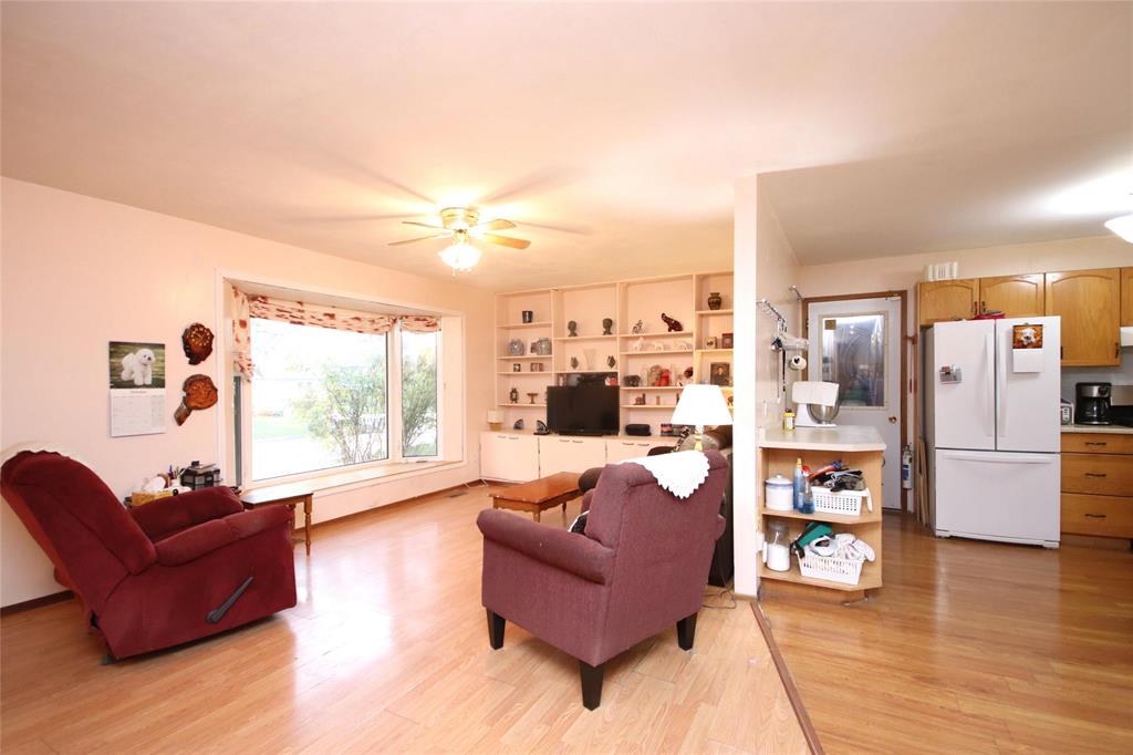 Great Space in this 1072sq.ft. Home with a Full Basement plus a Double Attached Garage! Built in 1993,2 Bdrm,2 Bath + Den! Well Thought Out Main Floor Plan,Spacious Kitchen,Dining & Living Room! Large Windows to the East and West flood these rooms with loads of natural light! Living Room features a Wall of Blt. In Shelving to take advantage of-Convenient for Collectables and Decor! Room in the Dining Area for even a China Cabinet! Ample Cabinetry in the Kitchen, Gas Stove(approx. 10 Yrs. Old) and a Blt. In Dishwasher makes clean up a Breeze! Enjoy the Huge Primary Bedroom,lots of space for a King Size Bed and Dressers! The Main Bath even has a handy linen closet! Relax in the Rec. Rm,more Blt. In Shelving down here,easily can fit both Media and Games/Office areas! Numerous Possibilities for the Den! Numerous Freezers included! Double Attached 24 x 24 Garage,Cement Driveway and Fenced in Yard! Enjoy the Concord Grapes,Raspberries,3 Apple Trees,Raised Garden Beds,2 Pear Trees and 2 Sheds! Metal Roof New in 2016! Appliances Included! Various Furniture Items may be Included! Immediate Possession!