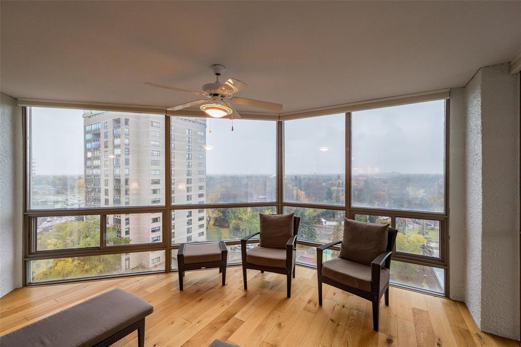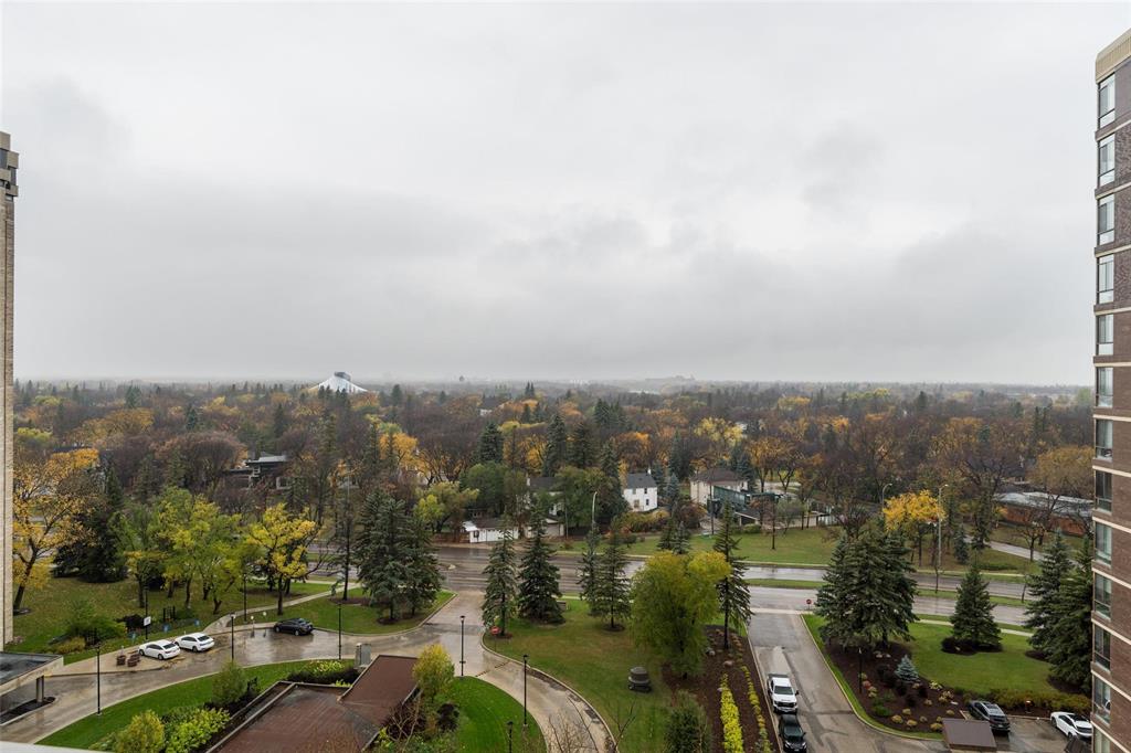 This is a fabulous condo in this highly desirable building. The condo has been tastefully updated throughout featuring amazing kitchen with high end appliances quartz countertops and spacious and bright breakfast area. The generous primary bedroom offers a deluxe spacious ensuite with walk-in spa tub and large glass walled shower.The main living area is open concept great room style with dining area and living room area entering onto a spacious den and to a four season sunroom. There is a large open balcony off the sunroom both of which which offer spectacular views to the west/northwest/Assiniboine Park. All the huge exterior windows have custom Hunter Douglas remote control blinds. There is an additional 2 piece bathroom and large ensuite laundry room with Miele appliances. There is an underground parking space with valet service if required. This is an absolutely wonderful condo home. Check it out soon you will love it!!