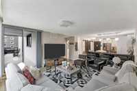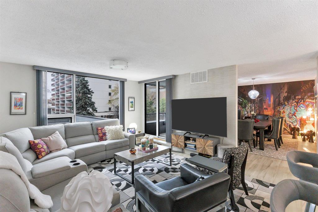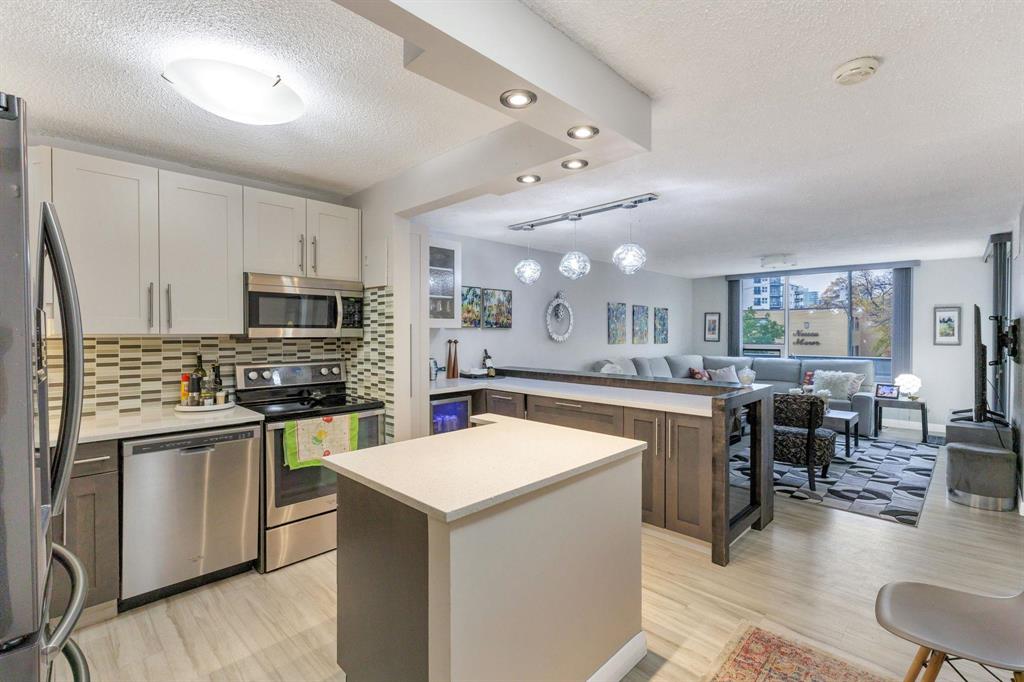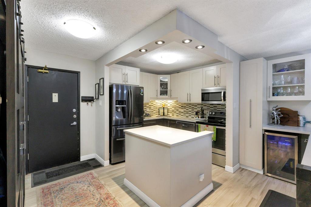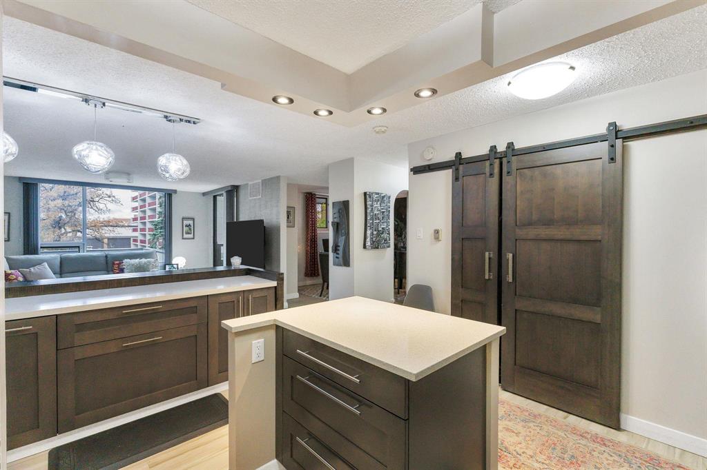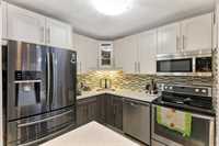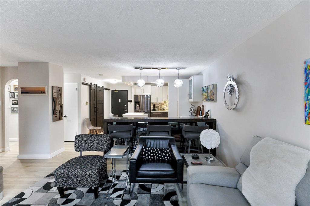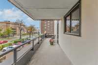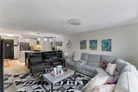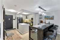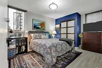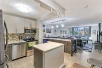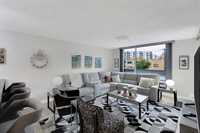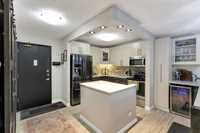 Welcome to one of the best units in the entire building, originally two condos combined into one stunning 2-bed, 2-bath suite with a massive primary leading to the double-sided balcony. One of only seven units in the building with in-suite laundry, this home has been fully renovated with a modern kitchen featuring a large island, quartz countertops, and luxury vinyl plank flooring throughout. The spacious layout offers a full-size dining area, generous living room, and an oversized primary bedroom with ensuite bath and balcony access. Located on the same level as the indoor pool and gym, this unit provides unmatched convenience and accessibility for those with mobility needs.