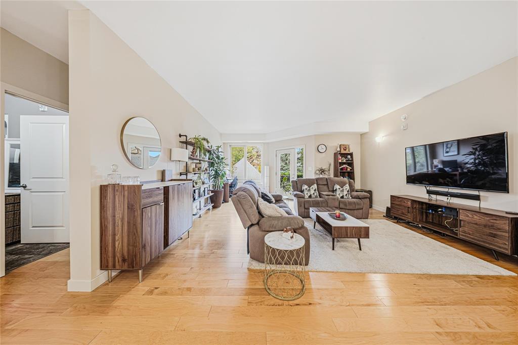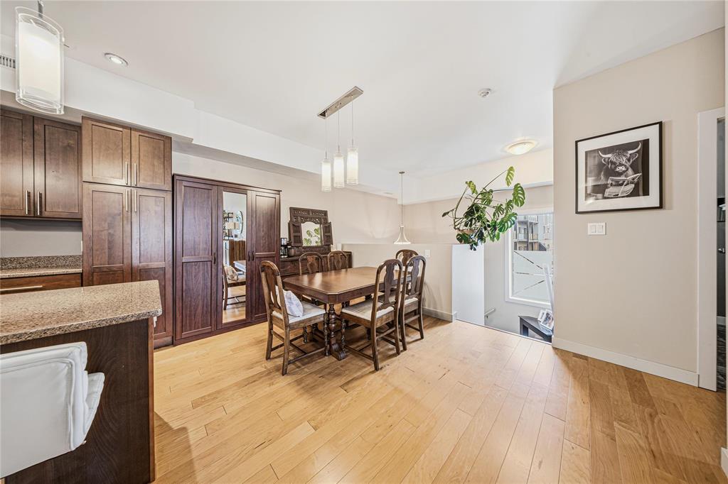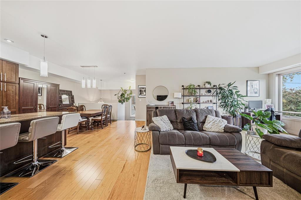 Showings now. Offers reviewed October 28, eve. Welcome to this exceptional condo lifestyle! Truly rare find offering 2 Bedrooms, 2 full Bathrooms, and 2 parking spots! This spacious 1226 sq ft corner suite offers a well-appointed open layout, and feels open, airy and bright! High ceilings, loads of windows, quality finishings throughout! Stunning hardwood floors. Enjoy a large eat-in style kitchen featuring shaker-style maple cabinetry, pantry, pull out drawers with soft close feature, granite counters and island with seating! Stainless-steel fridge, stove, dishwasher and microwave included. Formal dining - perfect for entertaining family and friends. Extra-large living room area to accommodate all of your cherished furnishings. Garden door to balcony for BBQ and a breath of fresh air - complete with outdoor storage room! Primary bedroom offers a walk in closet, and boasts room for king size bed! Laundry room with stacking washer and dryer. Pets welcome. Easy access to downtown, all shopping and amenities. Excellent investment to call home! Arrange your viewing today!