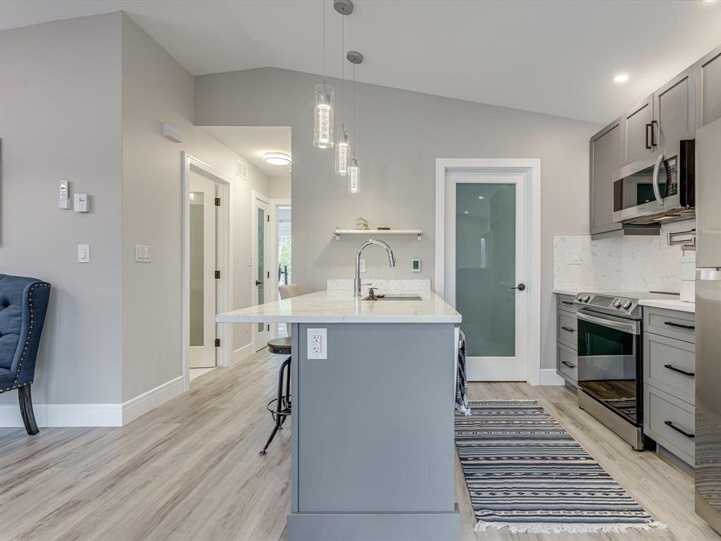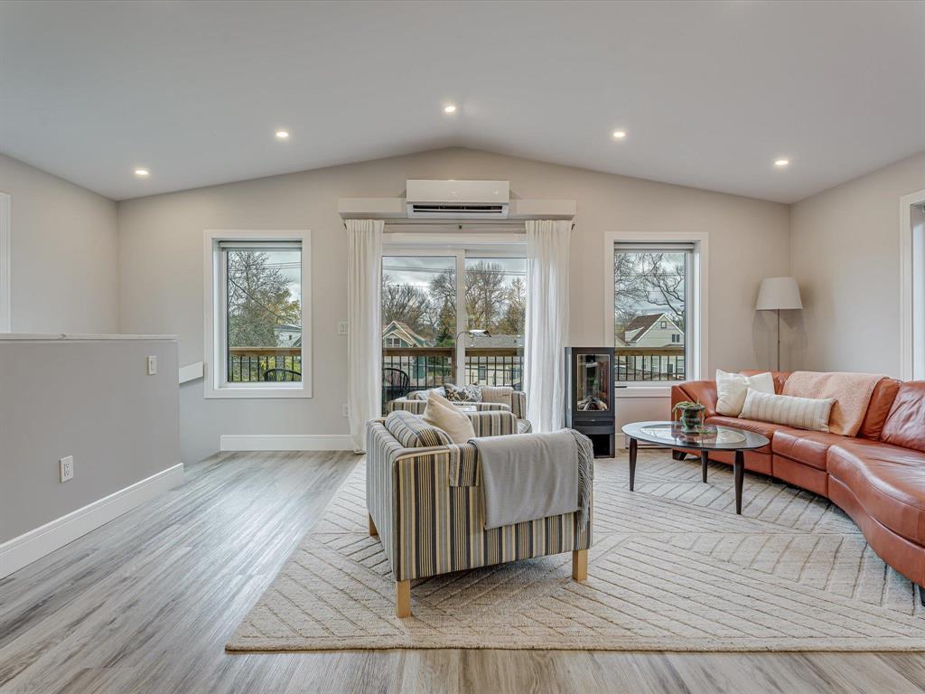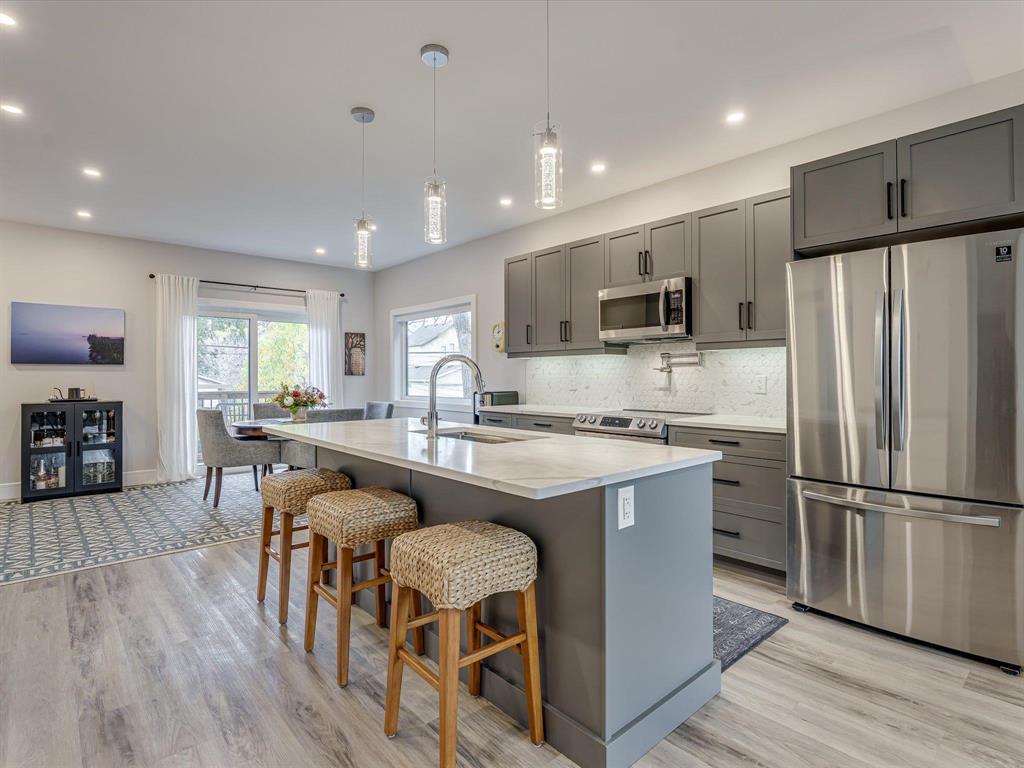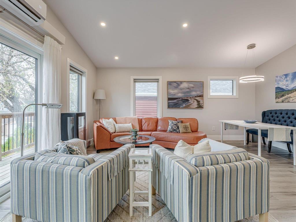 The finest of quality, beautifully designed duplex nestled into fashionable South Osborne. Luxury living set on an exceptionally landscaped private lot loads of garden space for each suite. Main suite: 3 BR's, 3 baths. Upper suite: 2 BR, 1 bath. Unequalled design for the active professionals. Both suites offer gorgeous open designs - beautiful kitchens, luxury baths + private laundries. 9' ceilings, heated bath floors, solid core doors, and great detail casings/trim. Truly oversized windows - all 4 sides! Primary suite with very stately foyer, main floor powder room, massive chef's island, walk-in pantry, patio doors to deck + beautifully designed patio and gardens. Upper level a 2 BR luxury suite - vaulted ceilings, HUGE windows, 2 BR's, Laundry, central open kitchen, private 24' deck! 2692 sq.ft. of Luxury decor finishing throughout all 3 levels. Car enthusiasts will love the custom metal 24 x 23 garage, high ceilings for a car/boat hoist! Custom-built in 2020 on piles. Put this home to the very top of your MUST VIEW NOW list