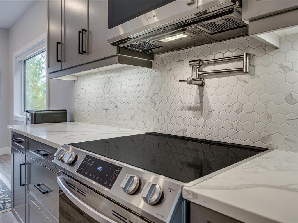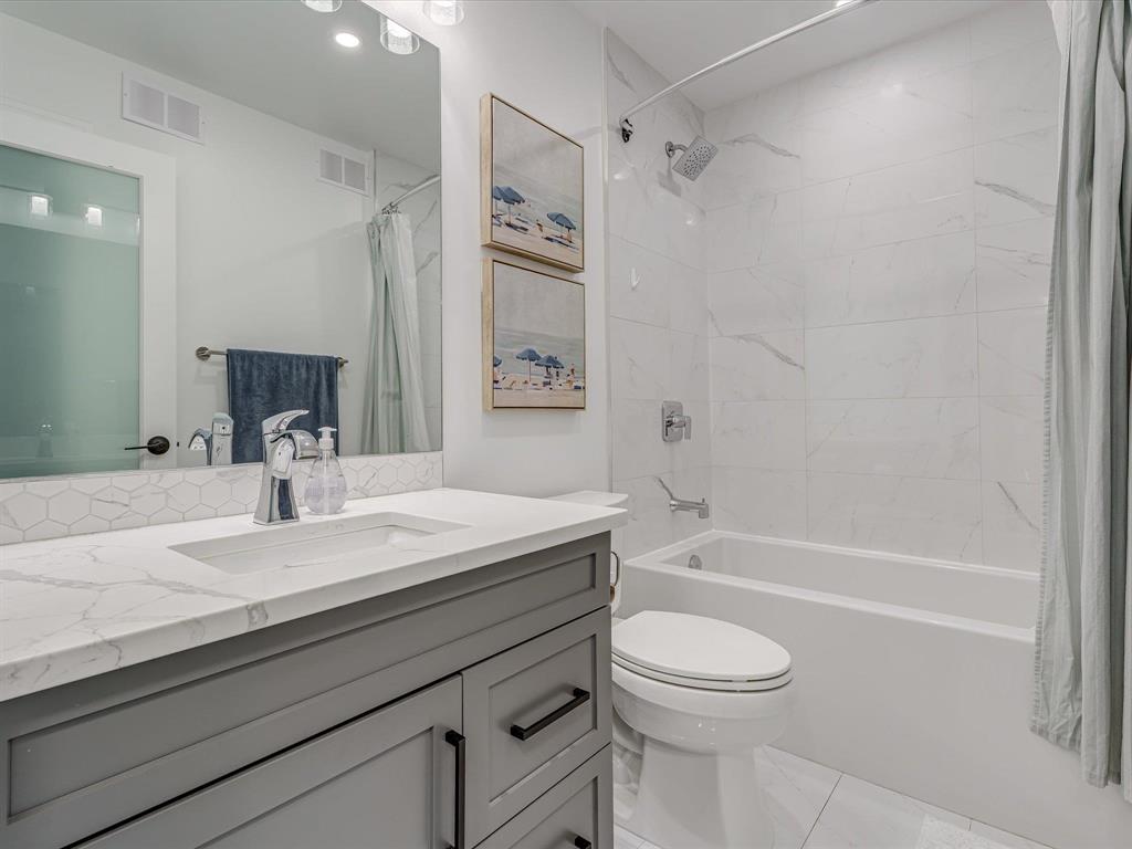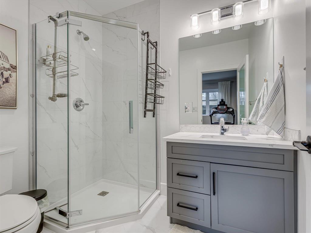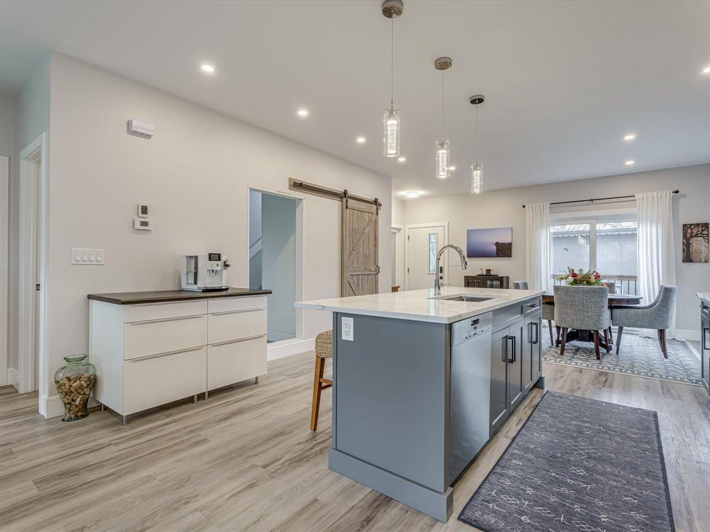 The finest of quality, beautifully designed duplex nestled into fashionable South Osborne. Luxury living set on an exceptionally landscaped private lot loads of garden space for each suite. Main suite: 3 BR's, 3 baths. Upper suite: 2 BR, 1 bath. Unequalled design for the active professionals. Both suites offer gorgeous open designs - beautiful kitchens, luxury baths + private laundries. 9' ceilings, heated bath floors, solid core doors, and great detail casings/trim. Truly oversized windows - all 4 sides! Primary suite with very stately foyer, main floor powder room, massive chef's island, walk-in pantry, patio doors to deck + beautifully designed patio and gardens. Upper level a 2 BR luxury suite - vaulted ceilings, HUGE windows, 2 BR's, Laundry, central open kitchen, private 24' deck! 2692 sq.ft. of Luxury decor finishing throughout all 3 levels. Car enthusiasts will love the custom metal 24 x 23 garage, high ceilings for a car/boat hoist! Custom-built in 2020 on piles. Put this home to the very top of your MUST VIEW NOW list