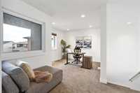 Showing starts now. Offers Oct 30th. Open House Sat & Sun 12-2pm. | Tucked in a quiet cul-de-sac in Sage Creek, this 2019-built Artista home combines timeless design and everyday functionality. The moment you walk in, a bright front den greets you, perfect for a home office or a quiet reading space. Beyond the entry, the open layout unfolds with 9’ ceilings, and a great room highlighted by a gas fireplace and soaring 18’ ceiling. The kitchen blends style and function with quartz countertops, a large island, hood fan, and sleek cabinetry pantry. The dining area opens to a spacious deck and landscaped yard, ideal for everyday living or entertaining. A powder room, laundry, and mudroom with garage access complete the main floor. Upstairs, the loft overlooks the great room below and leads to a bright primary suite with a 4-piece ensuite featuring relaxing backyard views, heated floors, and a spacious walk-in closet. Two additional bedrooms and another full bath complete this well-designed level. The insulated basement awaits your finishing touch. A comfortable, light-filled home built with Artista quality in every detail. A home you’ll want to experience in person.