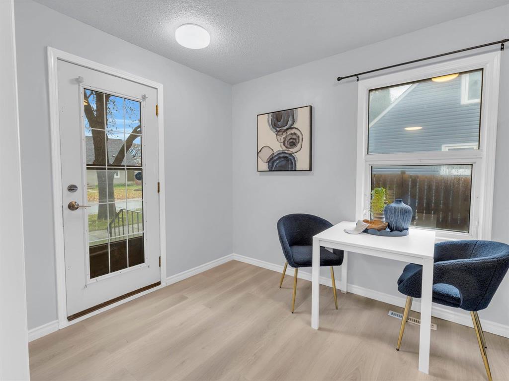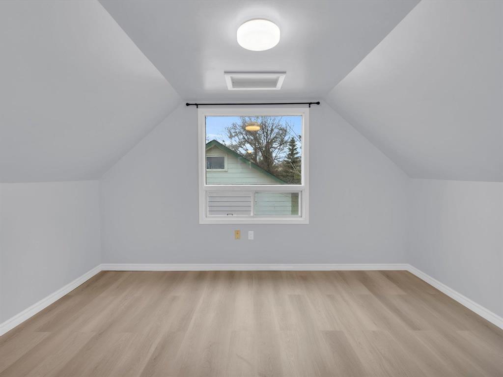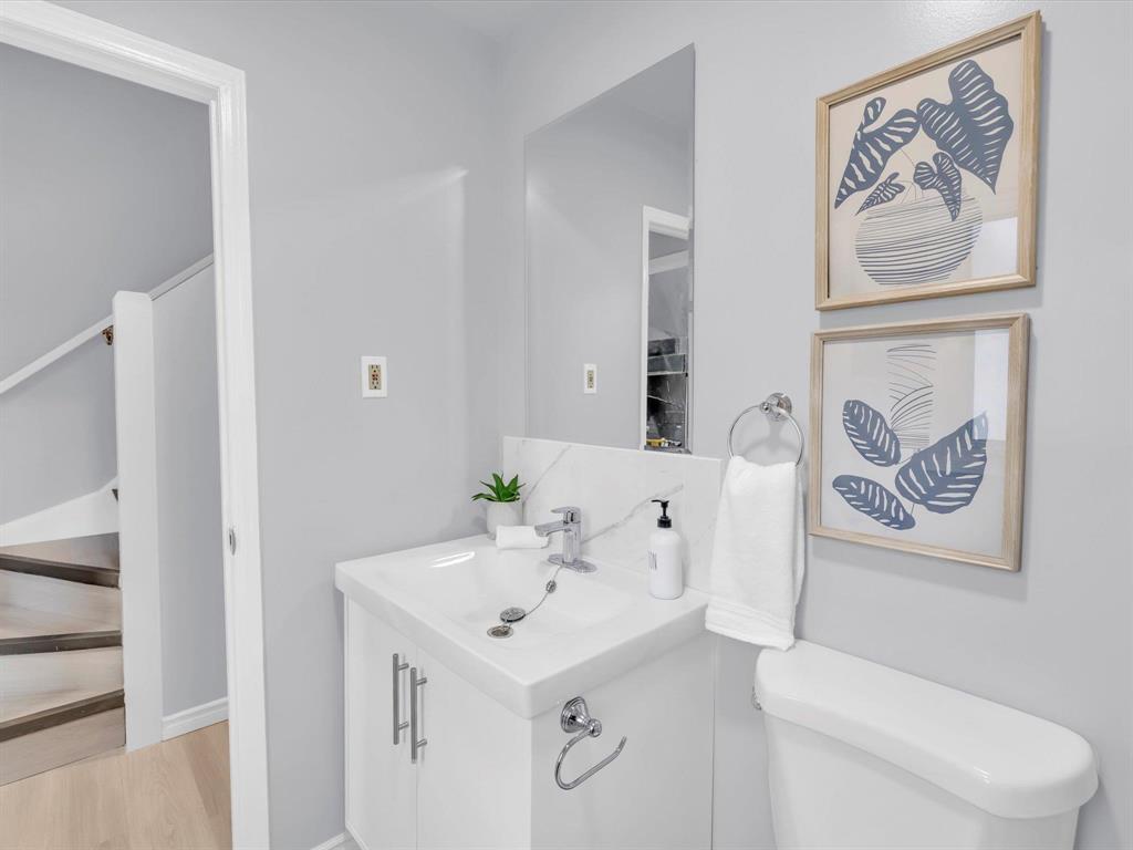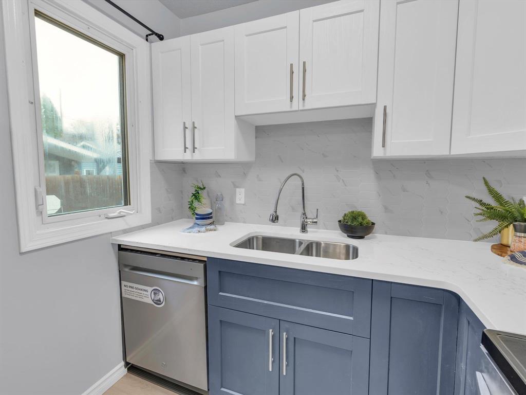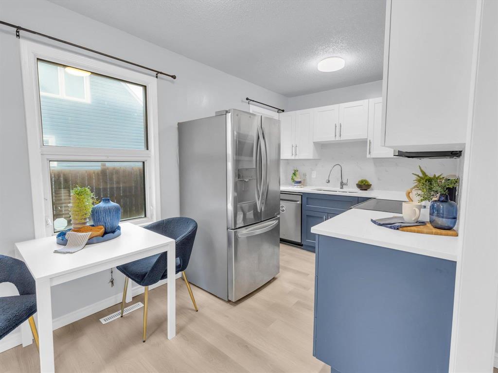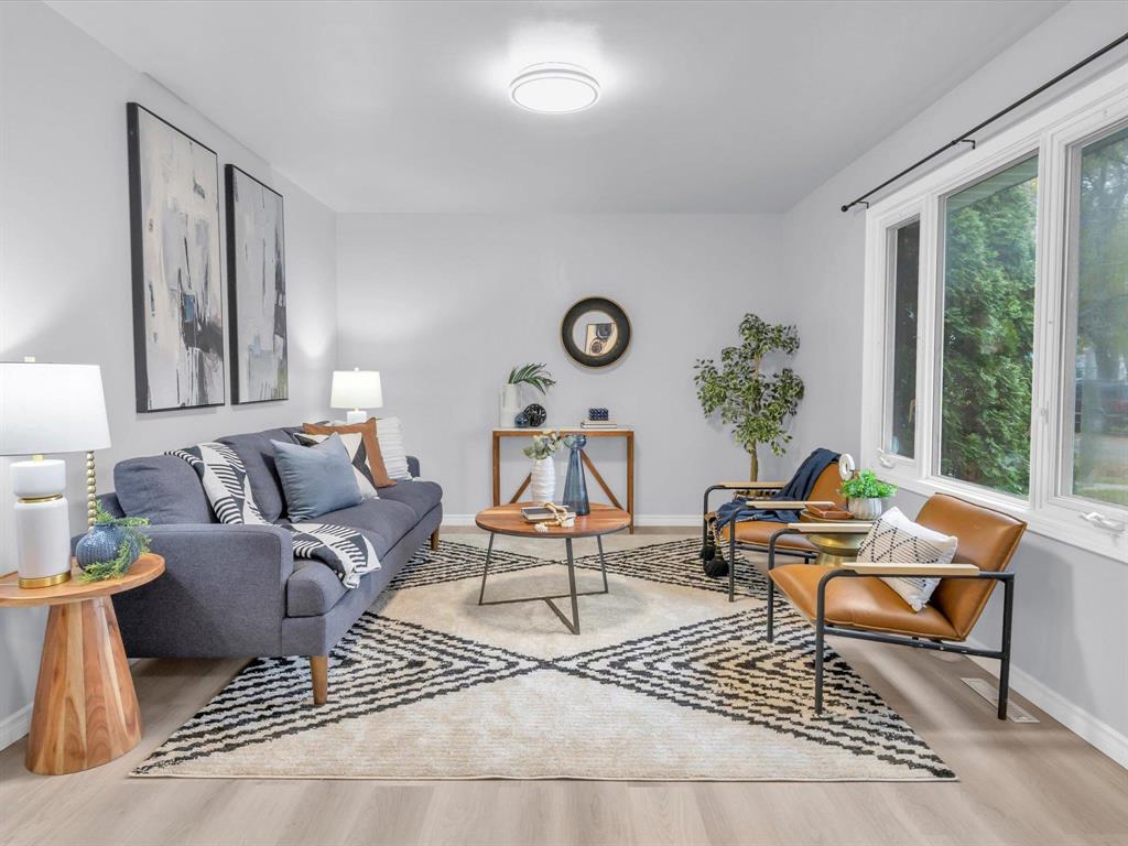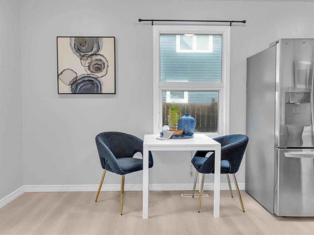 Open House on Sunday November 2nd from 2-4pm, Offers reviewed evening of Wednesday November 5. Step inside this beautifully updated 3-bedroom home. With 980 sq ft, this one and a half story home blends modern style with timeless charm. Bright and inviting main floor features an open-concept eat-in kitchen and living room with new flooring and large windows that flood the space with natural light. The stunning new kitchen offers sleek cabinetry with ample storage, a beautiful tiled backsplash, and stainless-steel appliances! The main floor also includes a spacious primary bedroom and a gorgeous 4-piece bathroom. Upstairs are two comfortable bedrooms with fresh finishes throughout. The utility room at the rear of the home, houses the utilities and the main floor laundry. Enjoy the fully fenced backyard with deck and ample room for outdoor entertaining. There is also an oversized single detached garage and room for two more cars on the pad. Updated from top to bottom—flooring, kitchen, bath, paint, and more—nothing left to do but move in and enjoy! Close to all levels of schools, parks, transit, and shopping. Call your realtor now to book your private showing.