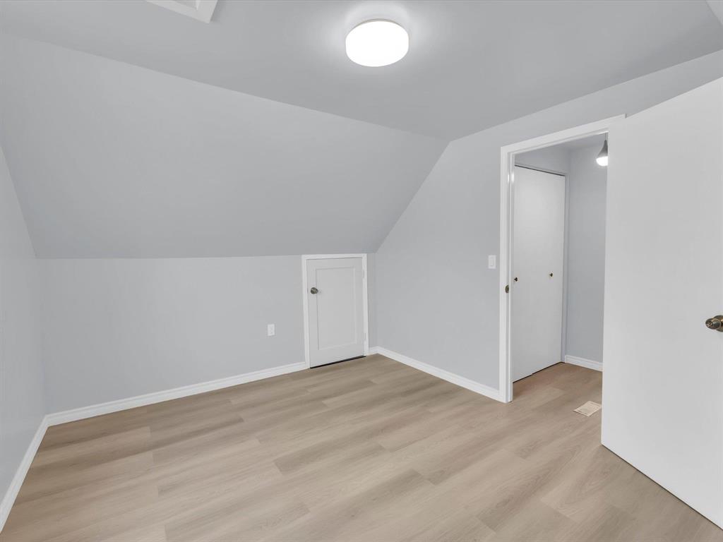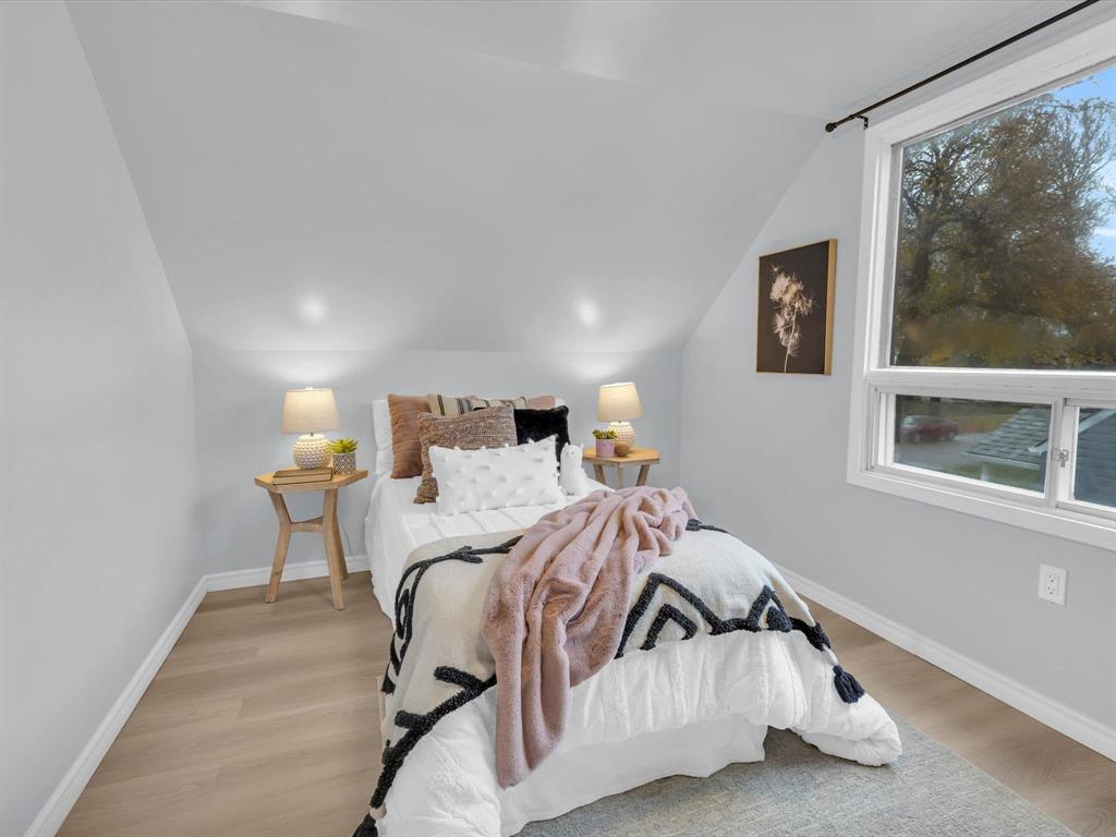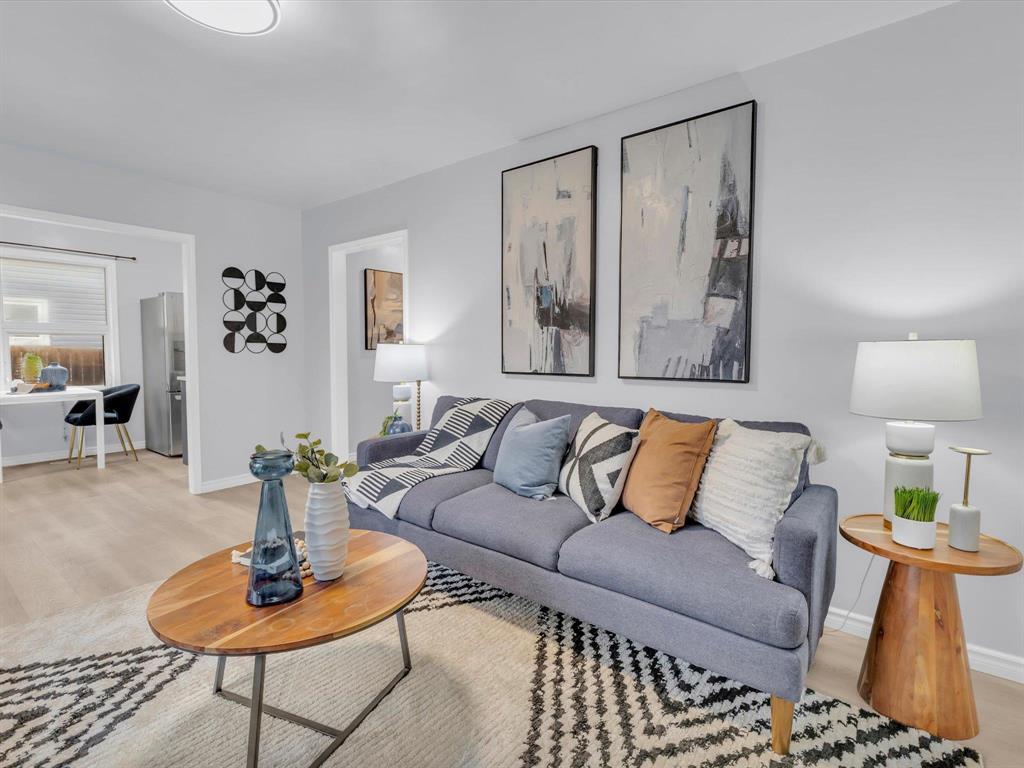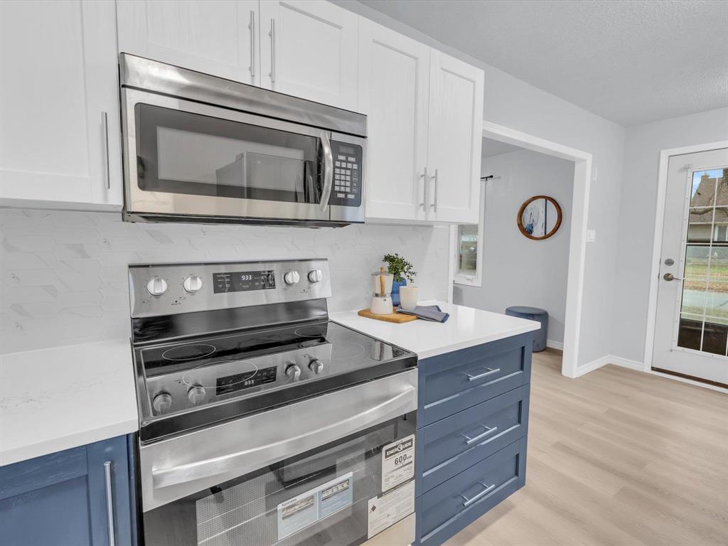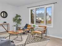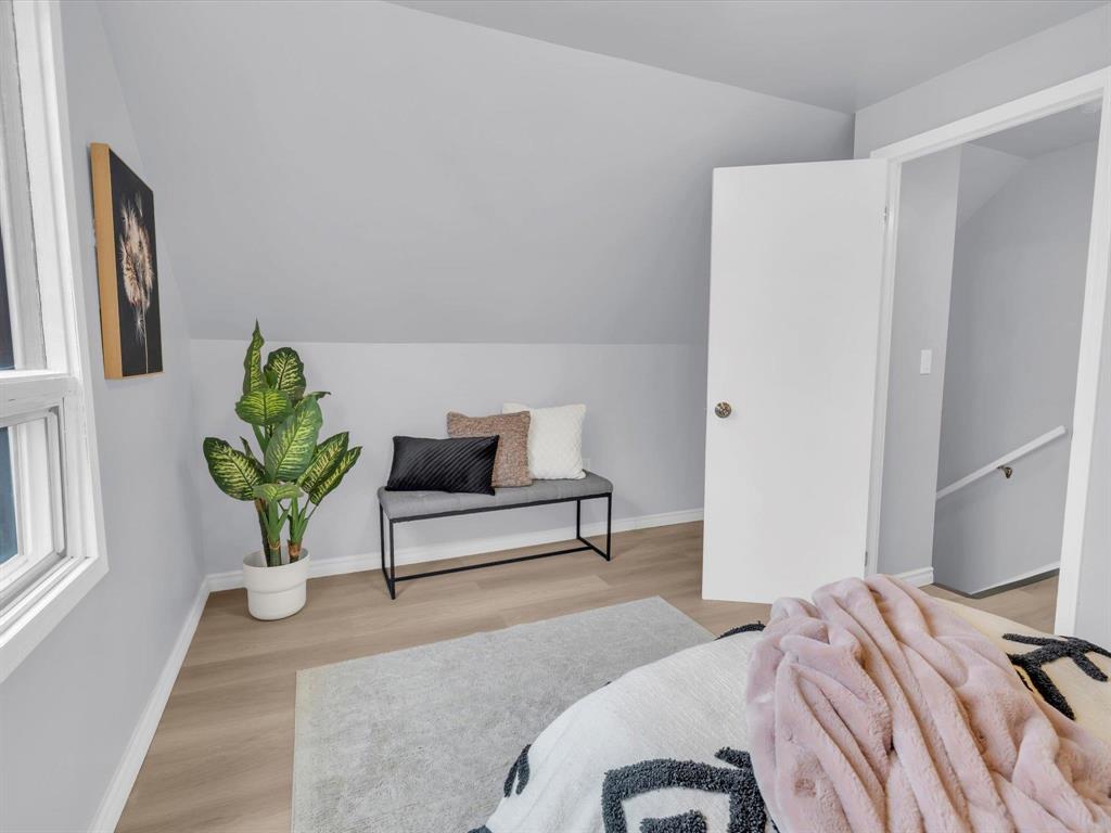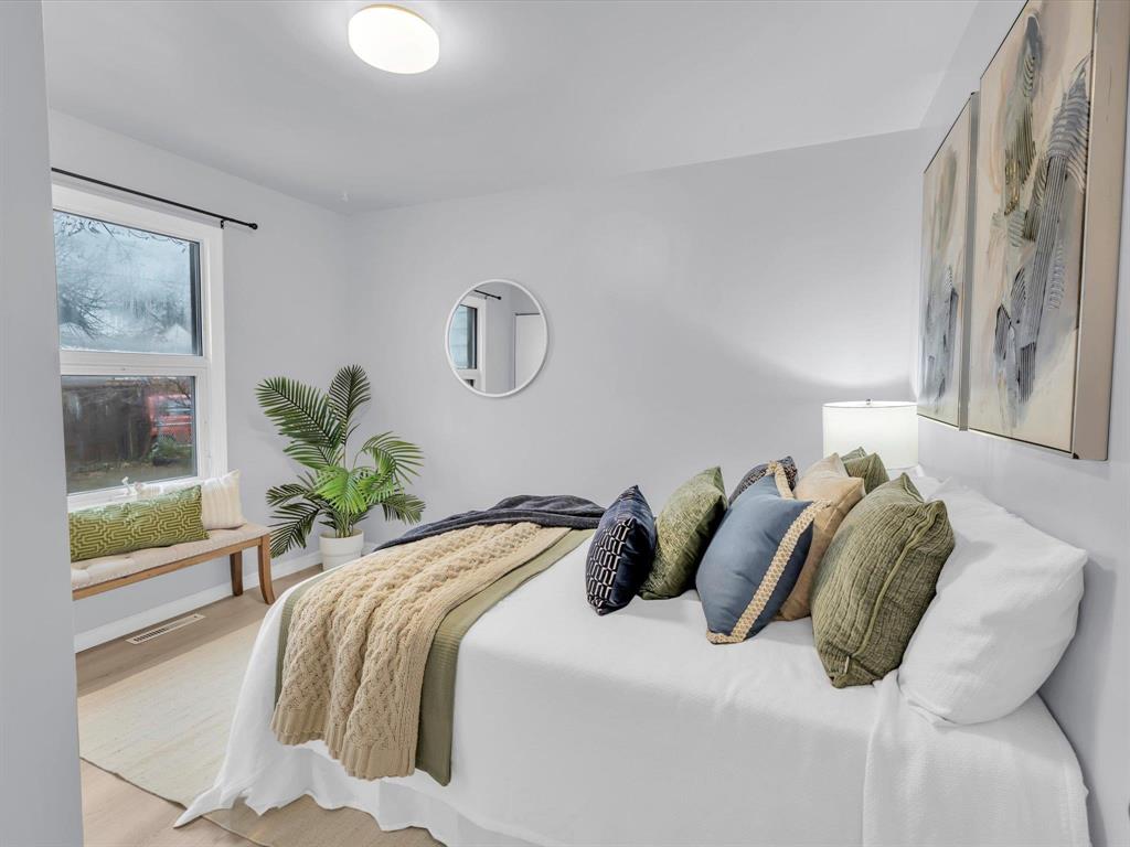 Open House on Sunday November 2nd from 2-4pm, Offers reviewed evening of Wednesday November 5. Step inside this beautifully updated 3-bedroom home. With 980 sq ft, this one and a half story home blends modern style with timeless charm. Bright and inviting main floor features an open-concept eat-in kitchen and living room with new flooring and large windows that flood the space with natural light. The stunning new kitchen offers sleek cabinetry with ample storage, a beautiful tiled backsplash, and stainless-steel appliances! The main floor also includes a spacious primary bedroom and a gorgeous 4-piece bathroom. Upstairs are two comfortable bedrooms with fresh finishes throughout. The utility room at the rear of the home, houses the utilities and the main floor laundry. Enjoy the fully fenced backyard with deck and ample room for outdoor entertaining. There is also an oversized single detached garage and room for two more cars on the pad. Updated from top to bottom—flooring, kitchen, bath, paint, and more—nothing left to do but move in and enjoy! Close to all levels of schools, parks, transit, and shopping. Call your realtor now to book your private showing.