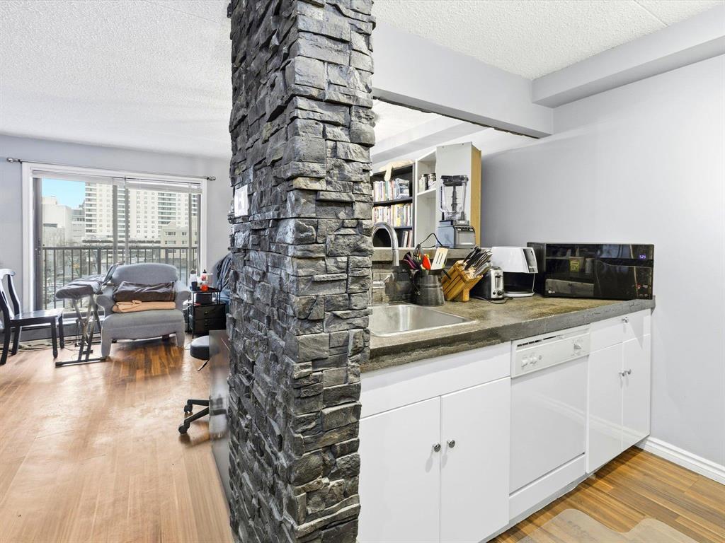 S/S NOW! 24 hours’ notice required. Offers reviewed the evening they are received. Welcome to 603-77 Edmonton Street – urban living at its finest! This stylish 1-bedroom, 1-bath condo in the heart of downtown Winnipeg offers 504 sq. ft. of thoughtfully designed space with amazing east views from your large, newly redone balcony – perfect for morning coffee or relaxing evenings. The open layout features a striking rock feature wall, in-suite laundry, and an air conditioning unit for seasonal comfort. Enjoy a fantastic list of amenities, including heated parking, an outdoor pool, hot tub, fitness room, and indoor access to a convenience store. This well-managed building is ideally located close to The Forks, transit, shops, restaurants, and all downtown conveniences. Pets are welcome (cat, fish, bird). Perfect for a single person or couple looking to stop renting and start owning! Also ideal for first-time buyers, young professionals, or investors seeking a low-maintenance lifestyle in an unbeatable location. Don’t miss your chance to call this vibrant condo home — book your showing today!