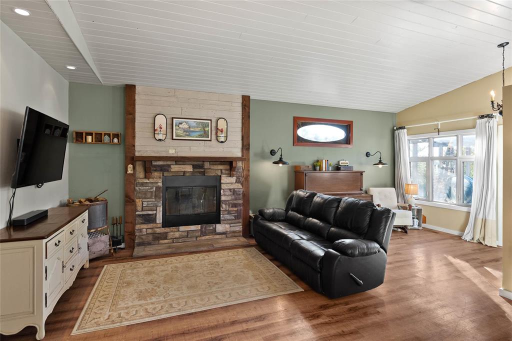 Established in 2011 with exceptional style & design. Featuring 1225 SF including 3 Bedrooms & 1.5 Baths. As you enter you will be captivated by the Rustic Charm this home offers, Tastefully designed Open Concept Living Space features a south facing Living Room w/vinyl plank flooring throughout, 12' shiplap ceilings, potlighting & gorgeous stone faced Wood Burning Fireplace. Adjacent Eat-In Kitchen w/ample cabinets & working counter space. 4 newer appliances (2023-2024) & dbl Pantry closet for additional storage. Spacious Primary BR features north west corner window, custom BI headboard & 2-dbl closets. Both 2nd & 3rd Bedrooms are spacious w/good size closets. Main floor Laundry Closet. Partial Basement w/additional "room" & 2 piece Bath. Utility & Storage space w/HE Furnace & 200 amp panel. Carrying the Rustic Charm outside, the spacious 60 X 160 yard is another oasis to be appreciated. Stone Fire Pit area & Beautiful Shed w/power. Front facing Deck w/pond. Balmoral offers excellent school system, Rec Centre, Playgrounds & a wonderful sense of community.