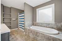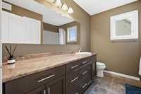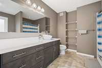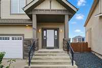 SS now. Offers Wed Oct 29th evening. OH Sat & Sun Oct 25/26@ 2-4PM. Gorgeous 2-Storey Family Home in Bridgwater Lakes! This home features 2,060 sq. ft., 4 bedrooms, and 3.5 baths, with a fully finished basement. The open-concept layout includes a spacious living room, dining area, and chef’s kitchen with granite countertops, raised island, tile backsplash, maple cabinetry, and a gas range stove. The upper level features 3 well-sized bedrooms, including a spacious primary suite with a 6' x 10' sitting area, walk-in closet, and deluxe 4-piece ensuite with quartz countertops and ceramic tile. A second-floor laundry room adds convenience. The finished basement offers a cozy entertainment area with a cultured-stone feature wall, ribbon gas fireplace, built-in ceiling speakers, a full bathroom with tiled glass shower and floating vanity; an additional bedroom, and ample storage. This property features an oversized fenced backyard, situated on a large pie-shaped lot—perfect for family living, outdoor entertaining, and endless potential for your own outdoor creations. This home is move-in ready and ideally located in the heart of Bridgwater Lakes, close to parks, walking trails, and all amenities!