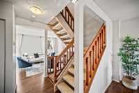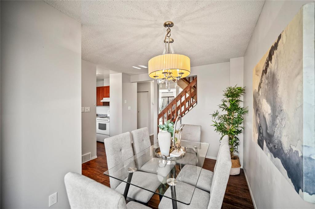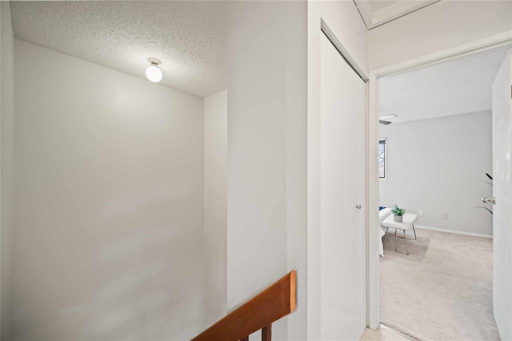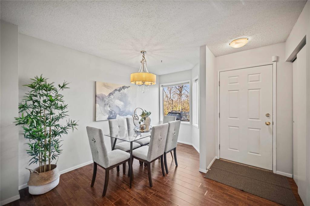 SS now. Open house Saturday, Nov 1, 2–4 PM & Sunday, Nov 2, 2–4 PM. Offers reviewed Monday, Nov 3 at 5 PM. Measurements +/- jogs. Stop renting and start owning! This 2-bedroom 1.5-bath end-unit townhouse offers the perfect blend of comfort, convenience and value in a peaceful, nature-filled community. Step inside to an inviting main floor with a welcoming front entrance, dining area, functional kitchen with a dishwasher replaced in 2025, a convenient 2-piece powder room and a bright living room with sliding doors leading to a private stained deck. Upstairs you’ll find two spacious bedrooms with excellent closet space and a lovely 4-piece bathroom featuring several 2025 updates. The finished basement provides additional living space with a versatile rec room, in-suite laundry and ample storage. Enjoy two parking stalls conveniently located right in front of your unit. Fantastic location close to the beautiful Bois-des-Esprits forest trails along the Seine River, while still being near schools, shopping, public transport and more. A perfect opportunity to enter homeownership in a welcoming, pet-friendly community — call today to book your private showing!