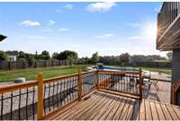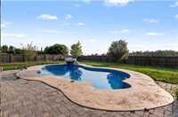 The fully finished walkout basement includes a large recreation area, dry bar, and two additional bedrooms. Enjoy outdoor living with a Barkman stone patio, in-ground pool with waterfall, deck with BBQ hookup, and a heated garage.