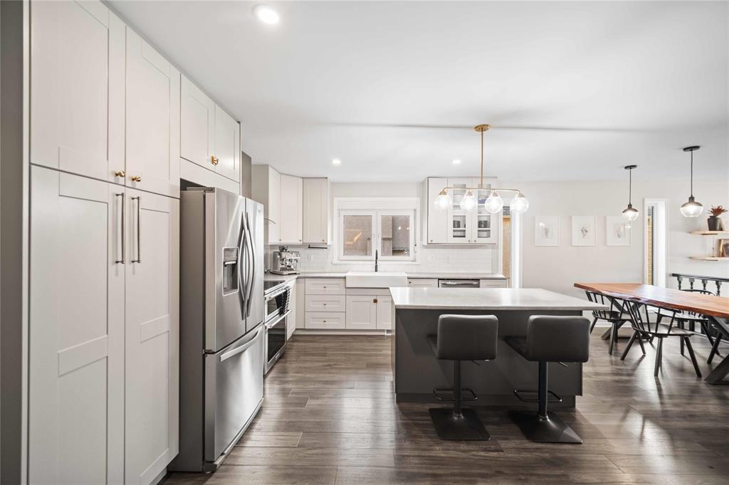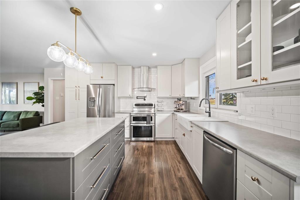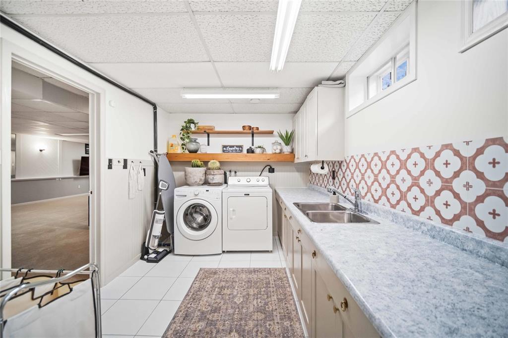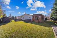 Showings start Oct. 27th. Offers to be presented Nov. 3rd. Open House Saturday November 1st 2-4pm. Updated Bungalow backing onto serene green space in Riverdale! This home exudes curb appeal with its interlocking stone driveway, classic brick exterior, and manicured landscaping. Located on a quiet street just steps from scenic walking paths, a large park, tennis courts, and playground. Inside, the open-concept great room is ideal for entertaining, featuring a modern kitchen with island, double oven, and a spacious pantry with pull-out drawers. The main floor offers three bedrooms, an updated family bath, and a primary suite with walk-in closet and ensuite. Downstairs, enjoy a fully finished basement with an expansive rec room, additional bedroom, 3-piece bath, and huge laundry area with ample storage. The private, fenced backyard includes a covered deck, in-ground sprinklers, and a storage shed. A double oversized attached garage is insulated for year-round use. Notable updates: shingles (’17), HWT (’21), rear fence (’22), deck stain (’25), bathroom updates (’25), and more!