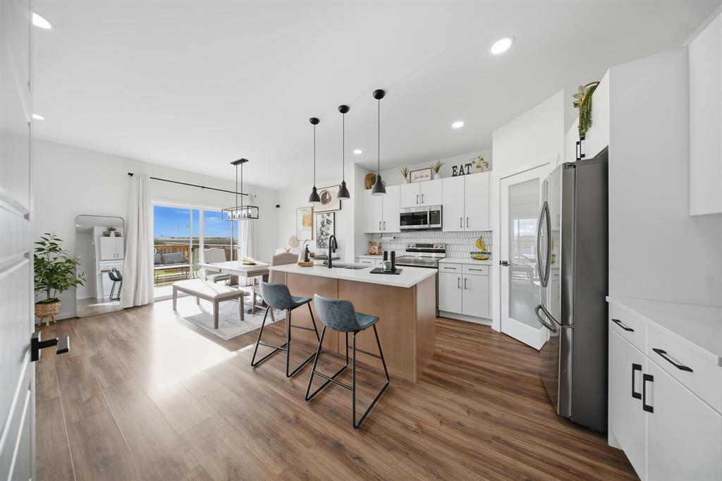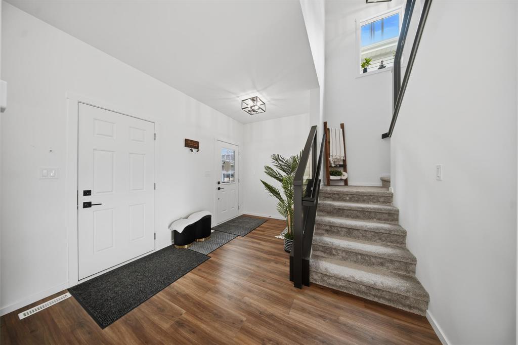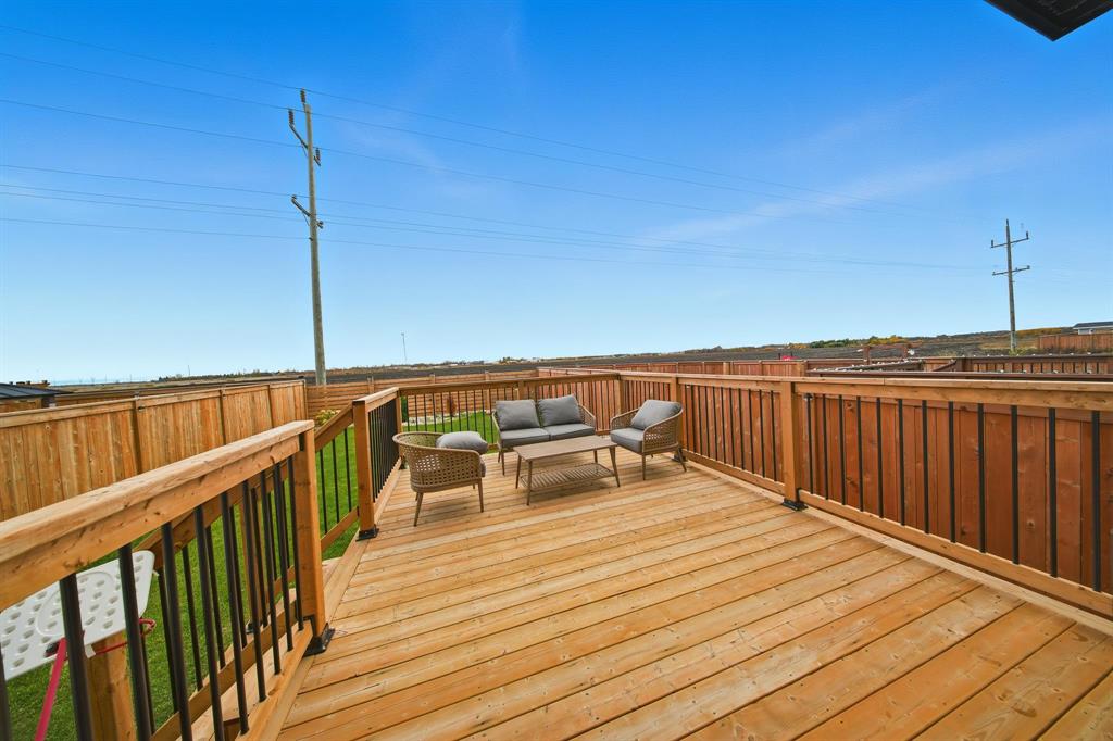 SS Now, Offers as received. Welcome to this beautiful 3 bedroom, 2.5 bath home located in the desirable community of Bonavista! As you enter, you’ll find a convenient half bath and closet on the right. The spacious main floor features a modern kitchen with quartz countertops, a stylish black backsplash, and plenty of cabinet space. The living room is on the left side, offering a bright and open space to relax, while the dining area is located just beside the kitchen, leading to a patio door that opens to a large deck — with no houses behind for added privacy. Upstairs offers three bedrooms, including a primary suite, a full common bathroom, and a loft area perfect for an office or sitting space. The home also includes a double attached garage and is close to schools, parks, and shopping.