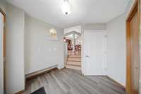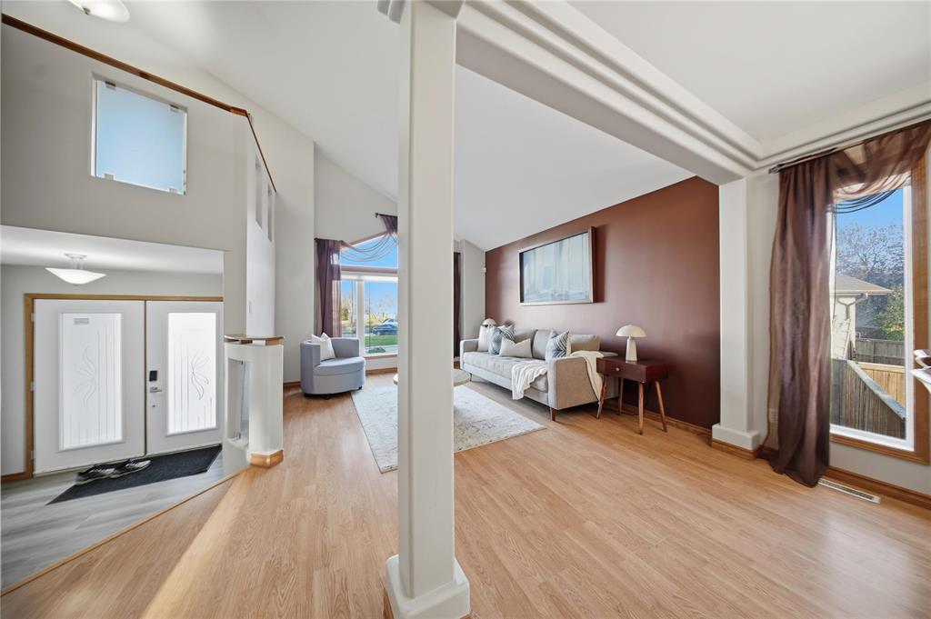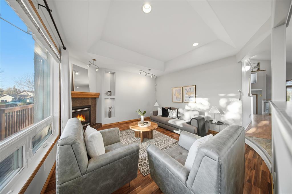 Welcome home to this immaculate cab-over, where comfort meets functionality! With 2,016 sq. ft. of living space, 5 bedrooms, and 3.5 bathrooms, there’s room for everyone to live, work, and play. The bright, open-concept living and dining area flows beautifully into an eat-in kitchen with stainless steel appliances, a pantry, and plenty of space to cook and gather. Off the kitchen, a cozy family room with a gas fireplace invites you to unwind. The main floor also offers two bedrooms and 1.5 baths—perfect for guests or kids. Upstairs, a separate sitting area with balcony access and office space leads to the large primary suite with a deluxe ensuite featuring a Jacuzzi tub, standing shower, and walk-in closet. The lower level offers two additional bedrooms, a full bath, a second kitchen, and a recreation area—ideal for extended family or rental opportunities. The landscaped backyard and deck offer a wonderful space for outdoor enjoyment. Located near Seven Oaks Hospital, schools, transit, shopping, community centers, and parks. A move-in-ready home offering exceptional comfort and versatility.