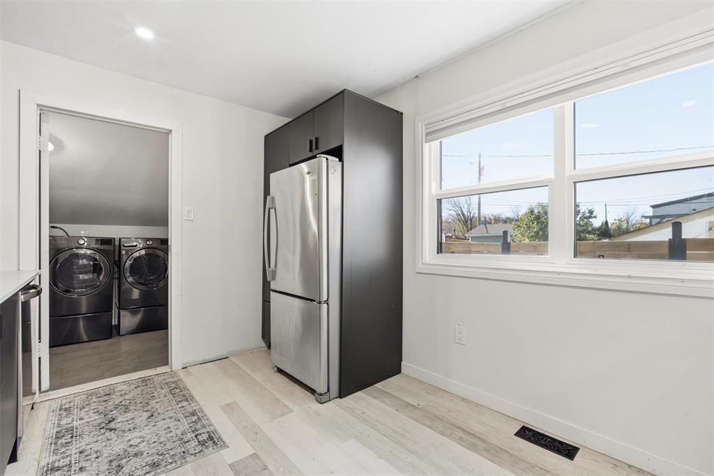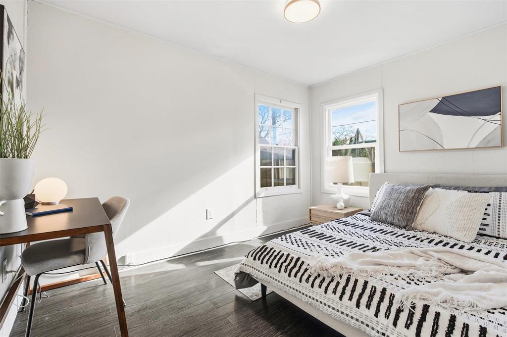 Showings NOW | Offers Mon, Nov 3 | Open House Sat & Sun, Nov 1 & 2, 12-2pm | Welcome to this beautifully updated 1.5 storey home offering 1,141 sq ft of functional living space with no basement—meaning no worries about leaks or dampness! The main floor features an inviting open-concept living room and kitchen, perfect for entertaining, along with a large mudroom/laundry area conveniently located off the back door. You’ll find two spacious bedrooms on the main level (one currently used as a dining room) and a gorgeous spa-inspired bathroom that adds a touch of luxury. Upstairs are two additional spacious bedrooms, ideal for family, guests, or a home office. Updates include a fully renovated kitchen and bathroom, fresh landscaping, new fence, newer furnace (2016), central A/C (2016), plumbing (2013), and insulation (2012). Enjoy summer evenings on the deck overlooking your fenced backyard and oversized double parking pad. Situated on a quiet, tree-lined street with fantastic neighbours, this is the perfect starter home in one of Winnipegs most desirable areas!