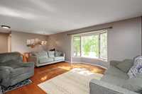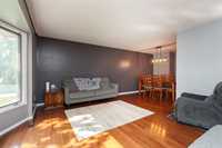 Beautiful 4-bedroom 2-bathroom home. The main floor features gorgeous L shaped living and dining room complete with bay window and hardwood flooring. The gourmet kitchen offers newer appliances including stainless steel refrigerator and dishwasher plenty of cupboard space and island. Spacious primary bedroom along another bedroom and a 4-piece bathroom completes the main floor.