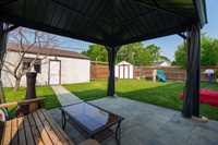 The spacious fenced back yard offers beautiful patio area for you to enjoy, and storage shed.