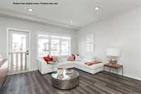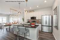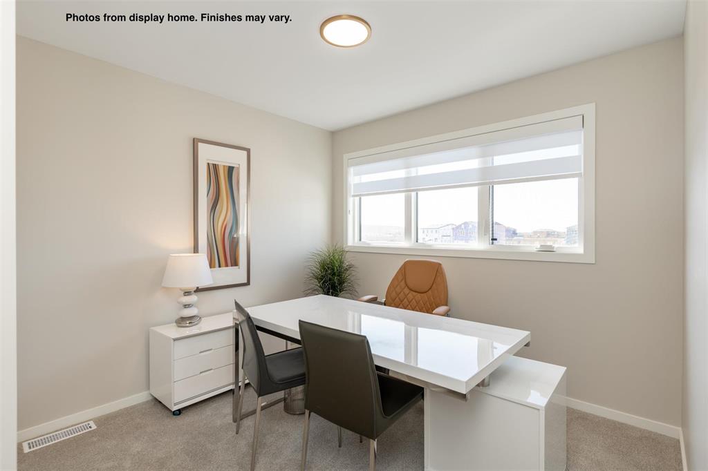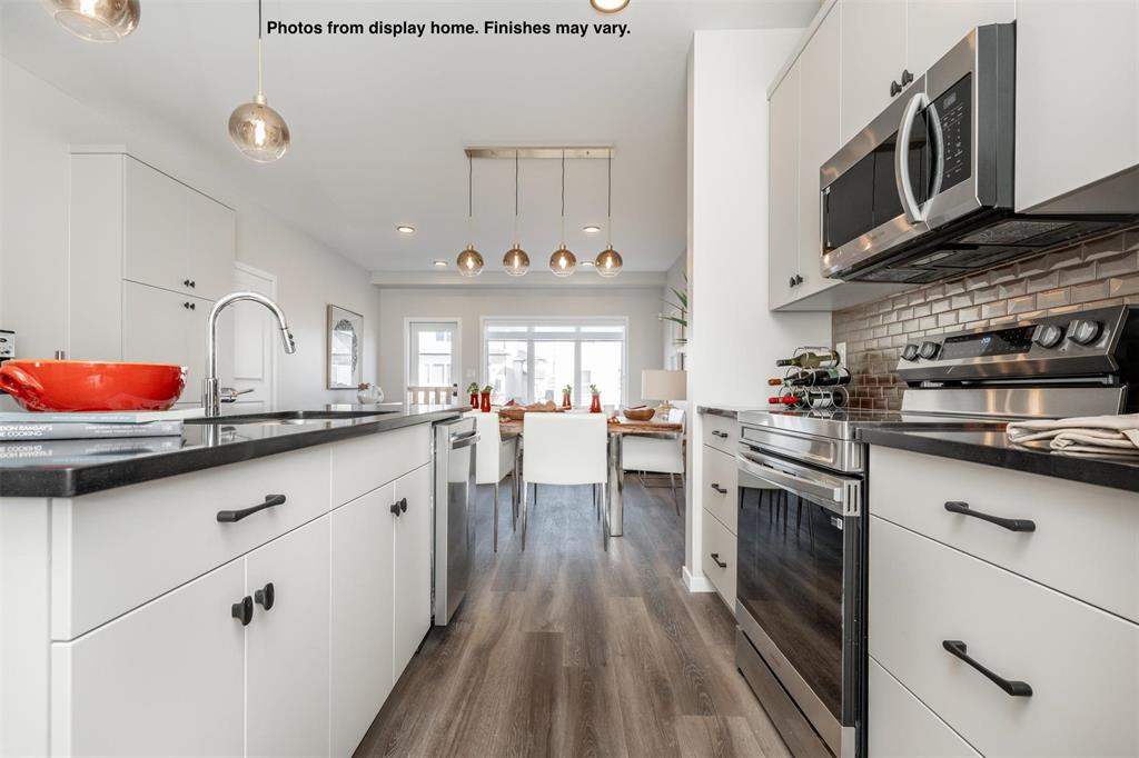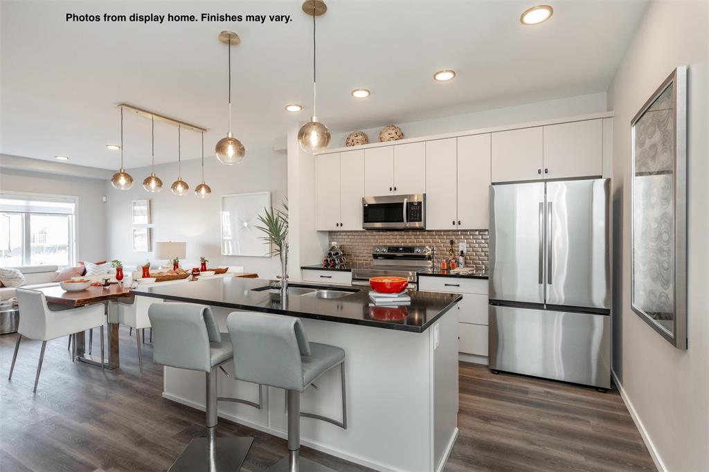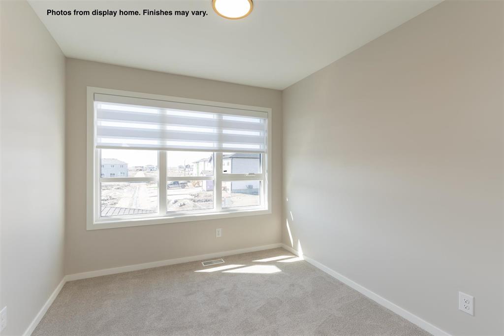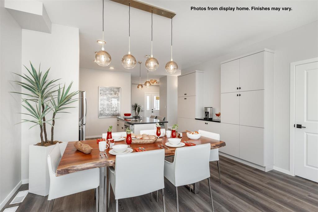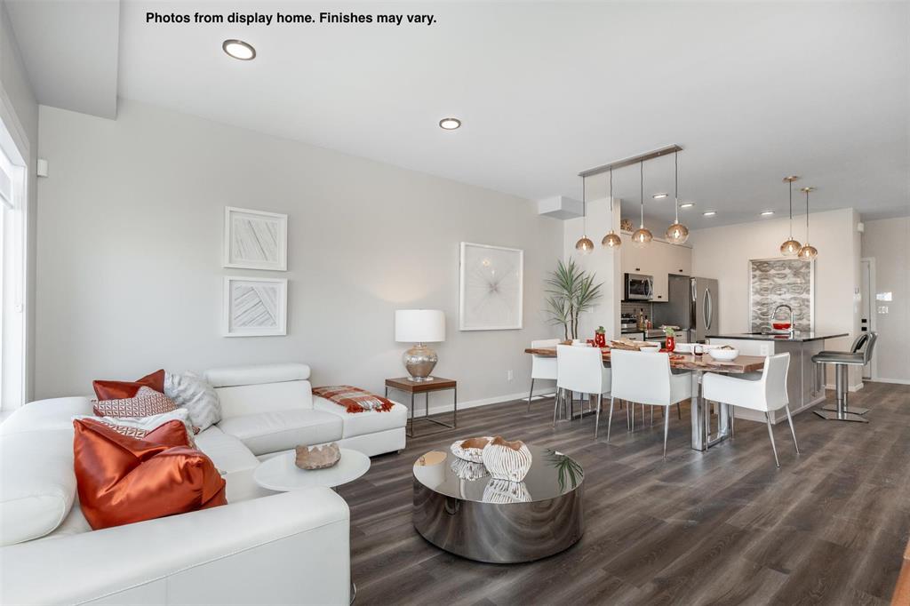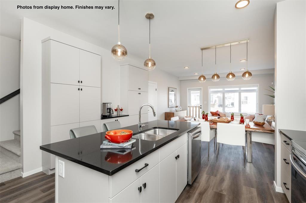 New 1400 Sq ft semi attached home under construction in Prairie Pointe with a quick possession. Features a covered front entry, spacious foyer with double coat closet & broom closet. Modern design kitchen with large island, coffee bar, & two full height wall pantry's. The large windows & full glass garden door across the rear of the great room provide plenty of natural light to the main floor living space of this home. Upstairs there are 3 bedrooms, 2 full baths and a laundry area plus a linen closet. There is also separate entry to the lower level. Some photos from display home, finishes may vary.