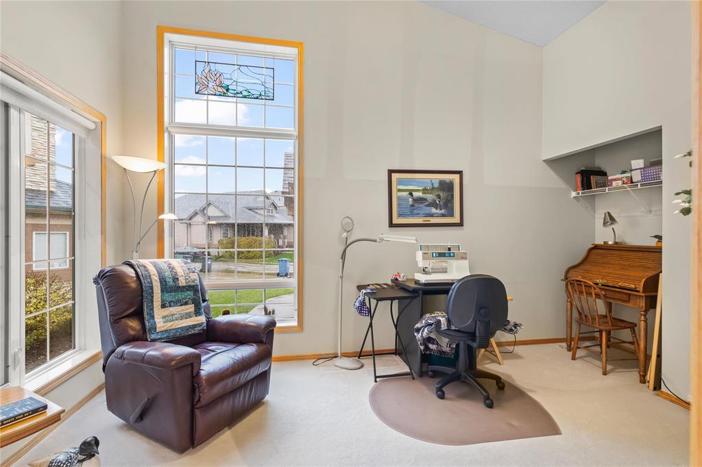 Welcome to easy living in this beautifully maintained 1,647 sf bungalow condo — where comfort and convenience meet. Built in 2007 and lovingly cared for by the original owners. Lawn care, snow removal, window washing are looked after, allowing you to enjoy a low-maintenance lifestyle. Inside, a bright and open main floor features soaring vaulted ceilings and large windows that fill the home with light and overlook the green space behind (Linden Woods Community Center). The great room with a gas fireplace flows into an open kitchen with a large pantry and a dining area that opens onto a private patio and yard backing onto community space. The property is beautifully landscaped with perennials and greenery. The primary bedroom includes a walk-in closet and four-piece ensuite, while a second bedroom or office, main floor laundry, and a two-car garage add everyday convenience. The finished lower level offers a spacious rec room, extra bedroom, hobby or office space, and plenty of storage . With central vac and a thoughtful layout designed for ease and enjoyment, this home is move-in ready! Shingles - 2024.