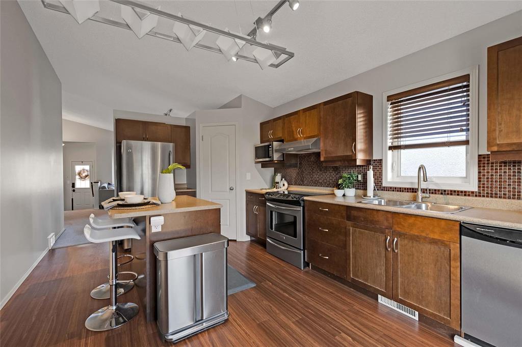 Showings start Thursday October 30th, Offers Wednesday November 5th. Welcome to this beautifully cared-for home in desirable River Park South — a neighbourhood known for its friendly atmosphere and nearby parks and schools. Step inside to a bright living and dining area with a bay window and custom built-ins. The eat-in kitchen offers stainless steel appliances, a stylish backsplash, and plenty of counter space for family meals or entertaining. Three generous bedrooms and a full bath sit on one side of the home, while the spacious primary suite includes a walk-in closet and private ensuite. The professionally finished lower level impresses with an inviting rec room with additional games room area, electric fireplace, wet bar, 4th bedroom, three-piece bath, and versatile office or hobby room. Outdoors, the landscaped and fenced yard with a two-tier deck, privacy screen, and storage shed is ideal for relaxing or hosting gatherings. A winning layout and warm design make this home perfect for today’s family lifestyle. Tons of extras including: Smart doorbell, outdoor camera, Govee permanent outdoor lights, utility sink, new freezer (2025) and extra shelving. This wonderful family home is move-in ready!