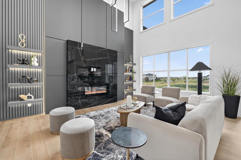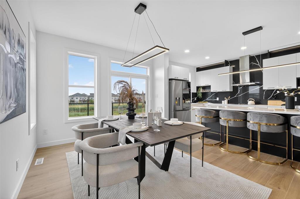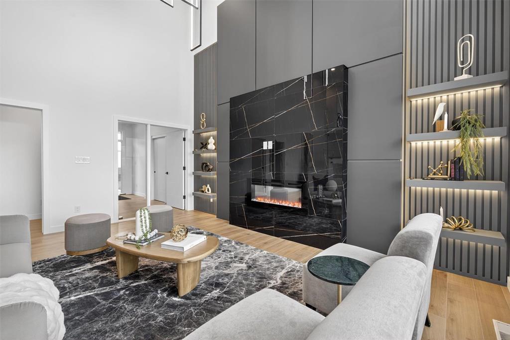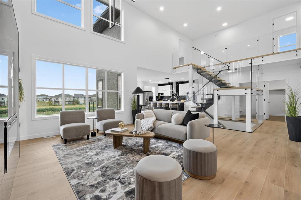 Absolutely stunning! This brand-new 2,800 sqft two-storey walkout sits right on the lake and is loaded with upgrades—plus it’s been thoughtfully designed with Vastu in mind. Featuring 5 bedrooms and 3 full baths, including a main-floor bed/bath combo and suspended wood floors (wood structural), this home blends luxury with function. The bright, open-concept living space showcases soaring ceilings, massive windows, and a show-stopping entertainment wall with an electric fireplace, built-ins, and a 10/10 chandelier. The chef’s kitchen is pure perfection with a 9' island, high-end appliances, quartz backsplash, and custom cabinetry—plus a fully equipped second kitchen with range and built-in oven/microwave. Sleek custom glass railings with wood and metal accents lead to the upper level, where you’ll find a dreamy primary suite with a spa-inspired 5-piece ensuite, walk-in shower, soaker tub, and huge walk-in closet. Three more spacious bedrooms, a 4-piece bath, and upper-level laundry complete the space. The walkout basement boasts 9’ ceilings, while upgrades include 200amp service, custom lighting, extra pot lights, a flat garage roof, and more. This home is move-in ready—and ready to impress!