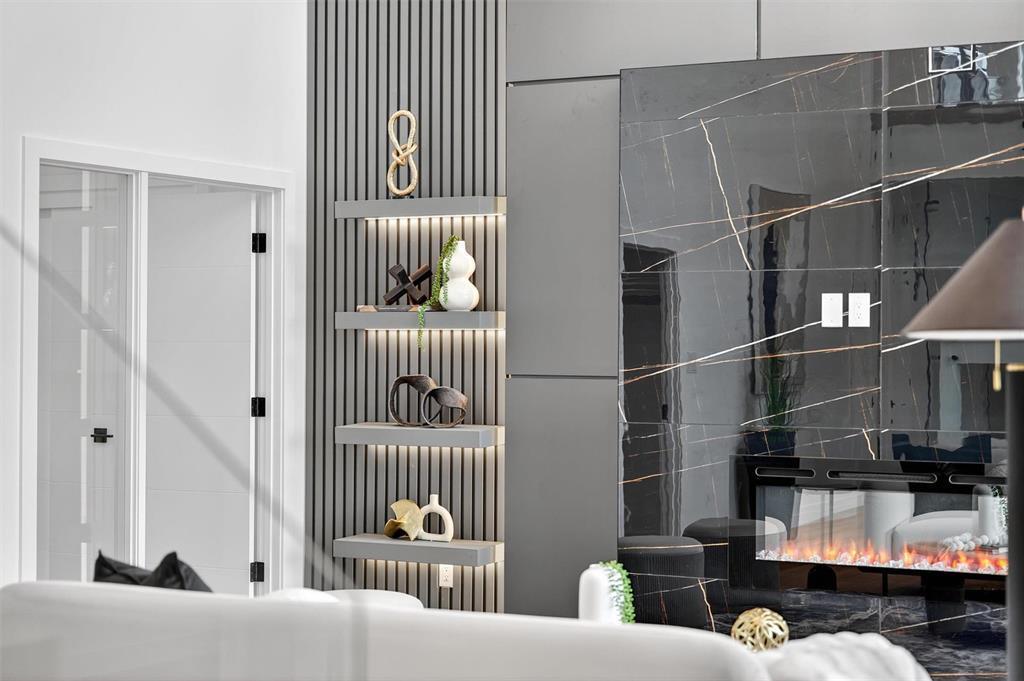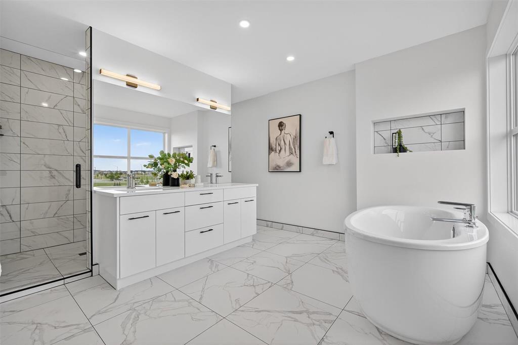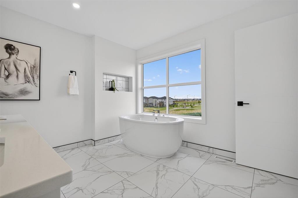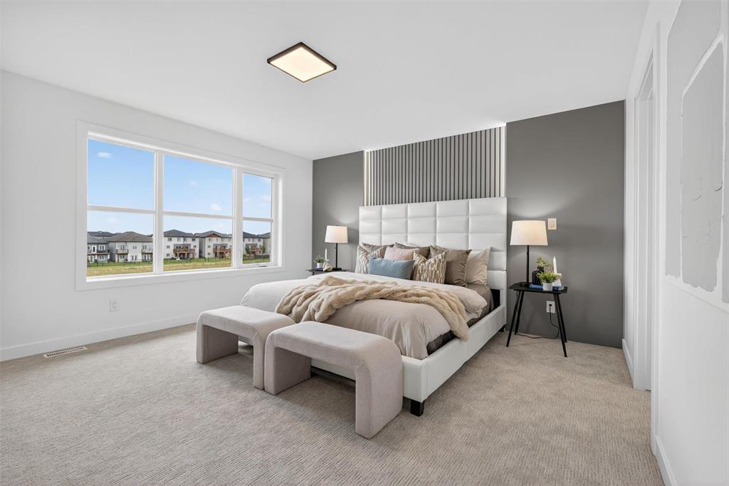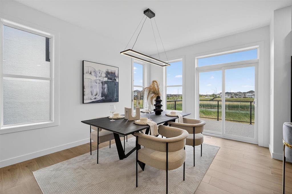 Absolutely stunning! This brand-new 2,800 sqft two-storey walkout sits right on the lake and is loaded with upgrades—plus it’s been thoughtfully designed with Vastu in mind. Featuring 5 bedrooms and 3 full baths, including a main-floor bed/bath combo and suspended wood floors (wood structural), this home blends luxury with function. The bright, open-concept living space showcases soaring ceilings, massive windows, and a show-stopping entertainment wall with an electric fireplace, built-ins, and a 10/10 chandelier. The chef’s kitchen is pure perfection with a 9' island, high-end appliances, quartz backsplash, and custom cabinetry—plus a fully equipped second kitchen with range and built-in oven/microwave. Sleek custom glass railings with wood and metal accents lead to the upper level, where you’ll find a dreamy primary suite with a spa-inspired 5-piece ensuite, walk-in shower, soaker tub, and huge walk-in closet. Three more spacious bedrooms, a 4-piece bath, and upper-level laundry complete the space. The walkout basement boasts 9’ ceilings, while upgrades include 200amp service, custom lighting, extra pot lights, a flat garage roof, and more. This home is move-in ready—and ready to impress!