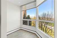 This expansive 1,820 sq ft corner unit at 180 Tuxedo is designed for those who value space, natural light, and refined finishes. With exposure to the south, east, and north, sunlight fills the open, hardwood-lined interior through walls of windows. A standout feature is the 280 square foot year-round sunroom with in-floor heat — ideal for reading, lounging, or entertaining. The adjacent 14x14 covered balcony adds a second private outdoor space. The kitchen includes an eat-in nook with floor-to-ceiling windows, creating a bright and welcoming atmosphere. The generous bedroom features a wall-to-wall built-in closet, and two full bathrooms offer added flexibility. Additionally there is a spacious laundry room including a sink an additional storage. With valet service, 24-hour security, and two heated underground parking stalls, this is a rare opportunity in a highly regarded concrete building in the heart of Tuxedo.