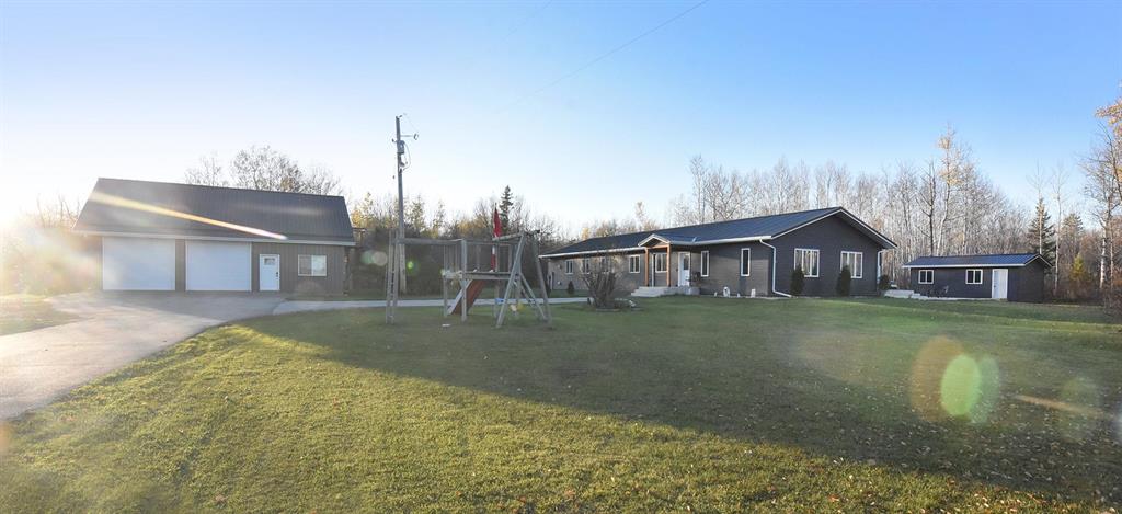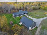 OPEN HOUSE: Nov 8, 12-2pm. EXPERIENCE THE ULTIMATE BLEND OF SPACE, STYLE & SERENITY! This exceptional 2785 SF. bungalow, purpose-built in 2022 sits on 10 peaceful acres surrounded by mature trees & park-like yard space—offering country living just minutes from the town of Lac du Bonnet. Designed for versatility, it offers endless possibilities for large or multi-generational families, hobbyists, or as a group care home. The stunning great room features soaring vaulted ceilings & an abundance of natural light—creating a warm, open space for gathering, dining & cooking together. The kitchen is a chef’s dream showcasing granite countertops, high-end appliances & impressive butler’s pantry. Patio doors open to a concrete patio ideal for outdoor entertaining or quiet relaxation. The primary suite includes a private den, walk-in closet & spa-like ensuite. 6 additional bedrooms share a full bath & a cozy 2nd living area connects to a third bath, laundry with 2 washers & dryers & rear entry. Outside, enjoy a dbl heated garage w/office, 3-pc bath rough-in & loft (2022), plus a 60x40 quonset w/heated pens & extra sheds. 400-amp service. A rare opportunity offering quality, privacy & the best of country living!
