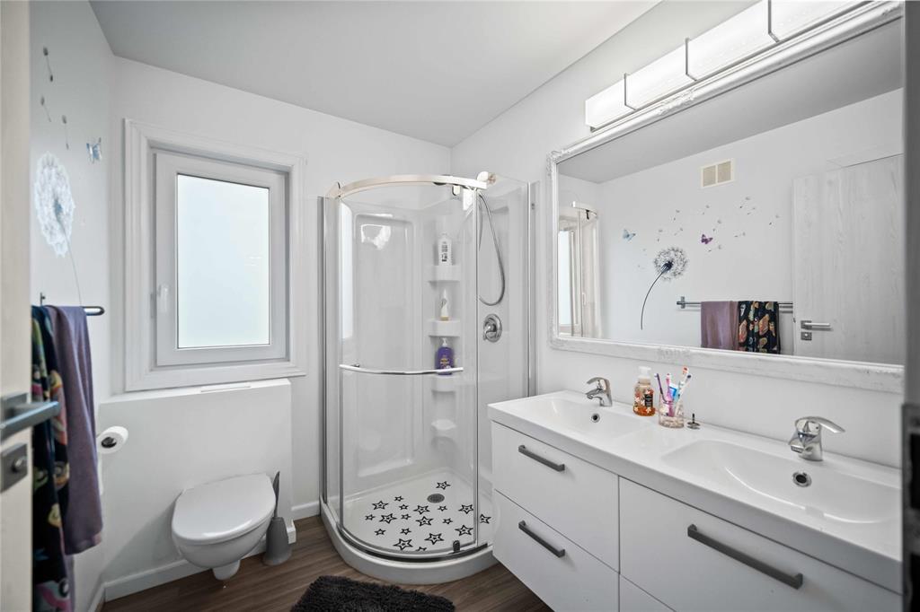 SS. Now, OTP as received. This is the PERFECT home for the large family! Located on a mature 2 acre lot just on the outskirts of Mitchell, only mins to Steinbach! With attractive curb appeal upon approach including stone & KWP siding & 30'X30' OVERSIZED double garage w/ gas heat perfect for all of your grown-up toys! The home is designed as a 3 level split w/ the main floor living space featuring 9' ceilings, generous triple pane windows & vinyl plank flooring. The spacious living room opens to dining & kitchen, includes 2pc. bath & main floor laundry. The kitchen is well appointed w/ Fridge & freezer combination, built-in oven & cook top, peninsula, under cabinet lighting, corner pantry & ample storage & prep. space. The upper level features 4 generous bedrooms & 2 full baths. Escape at the end of the day to your private primary bedroom w/ HUGE walk-in closet & 4pc. ensuite. The lower level is completely finished including large rec. room perfect for teenagers, 3 more bedrooms, 5pc. bath & equipped w/ 2nd laundry! The back yard feels like your own private park surrounded by trees w/ plenty of space for a vegetable garden. Enjoy a summertime BBQ on the 14'X22' deck. To many features to list, Call Now!