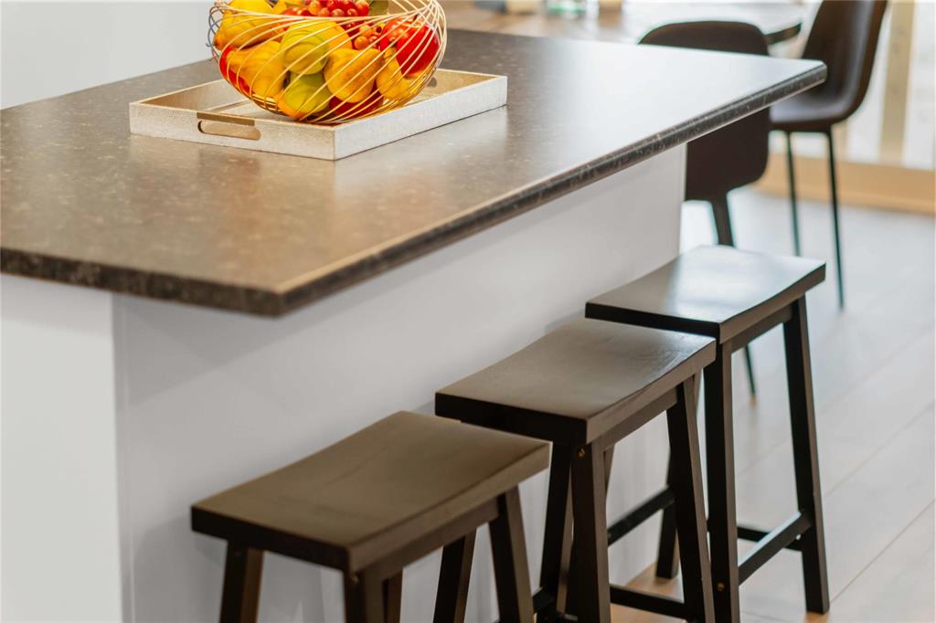 room. The kitchen is well appointed w/ plenty of prep. space, island w/ seating area & huge walk-in pantry.