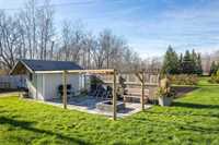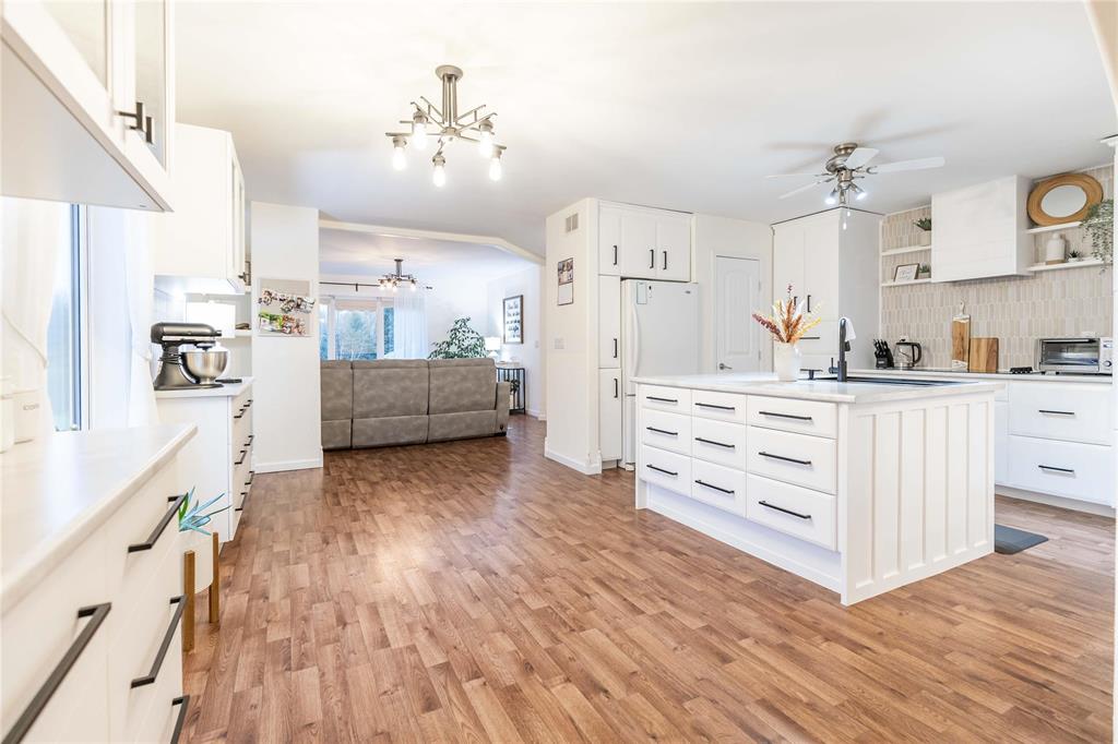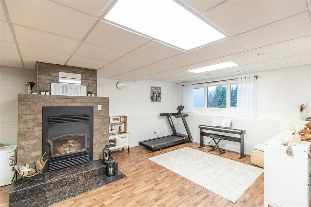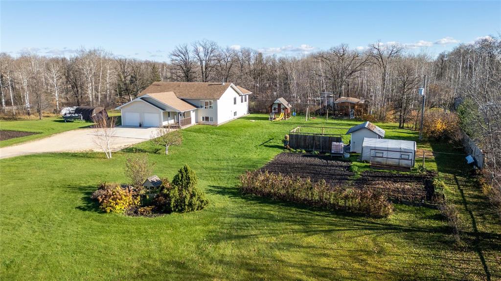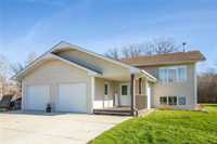 Stunning Country Retreat! Welcome to this beautiful 1770 SF family home nestled on a serene, tree-lined 3.08-acre property. As you arrive, a gorgeous row of mature evergreens offers privacy & sets the tone for peaceful country living. The double att insulated garage includes a concrete parking pad—perfect for guests. A wide, covered front deck invites you inside! Step up into the bright & spacious living room, flooded with natural light. The heart of the home is the stylish dream kitchen, featuring an abundance of cabinetry & counter space, large island w/9 drawers, cooktop stove & wall oven. The dining area is ideal for family gatherings, offering additional cabinetry, counter space & room for a second fridge/freezer. A garden door leads to the back deck—perfect for summer BBQs! This level also hosts a spacious primary BR, 2 more BRs & a modern 4pc bath. The lower level boasts a massive family room w/cozy wood fireplace, 2 large BRs (one with a 2-pc ensuite), & an additional 3pc bath. Outdoors, you’ll love the peaceful setting featuring several outbuildings, patio w/fire pit, large garden & an abundance of privacy surrounded by mature trees. Move right in & enjoy the best of country living!