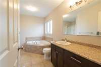Welcome to this beautiful Bridgwater Forest two-storey home featuring a fully finished basement and an oversized double garage! Enjoy the walking paths just steps from your front door. Offering over 1,700 sq. ft. plus a fully finished basement, this home perfectly combines comfort, quality, and style. The main floor showcases luxury vinyl tile flooring, a bright great room with a gas fireplace, and an eat-in kitchen with maple cabinetry, a large island, and a spacious pantry. A den/office, 2-piece bath, and mudroom with laundry complete the main level. Upstairs, the spacious primary suite includes a walk-in closet and a 4-piece ensuite with jetted tub and separate shower, plus two additional bedrooms and another full bath. The finished basement adds a large recreation room wired for sound, a full bath, and an extra bedroom—ideal for guests or rental potential. Enjoy summer evenings in the fenced backyard with a concrete patio, deck, and outdoor speakers. A versatile layout ideal for large families or separate rental setup. Conveniently located close to parks, schools, and transit—book your private showing today!