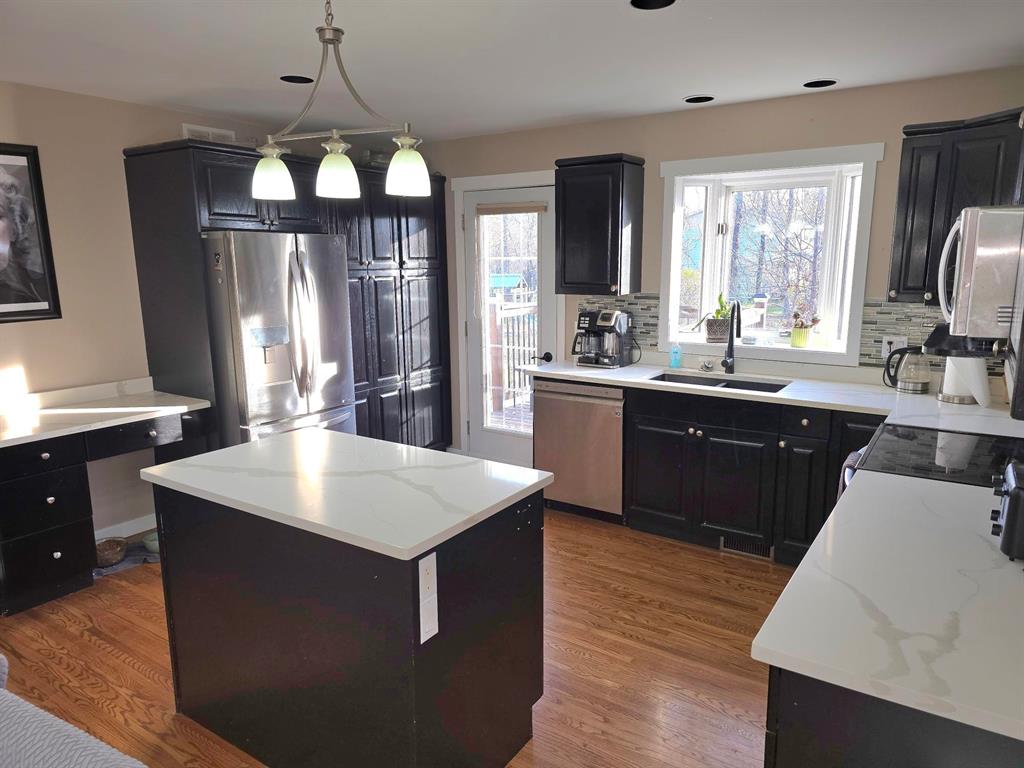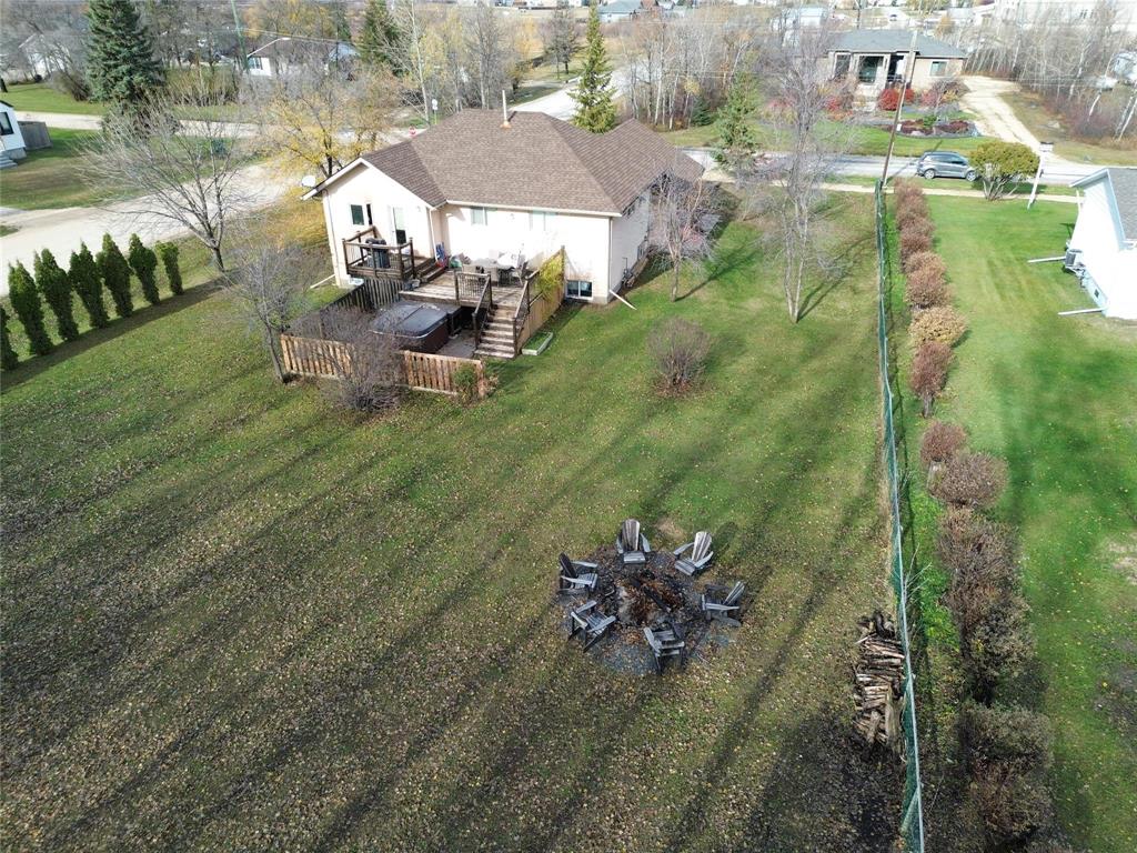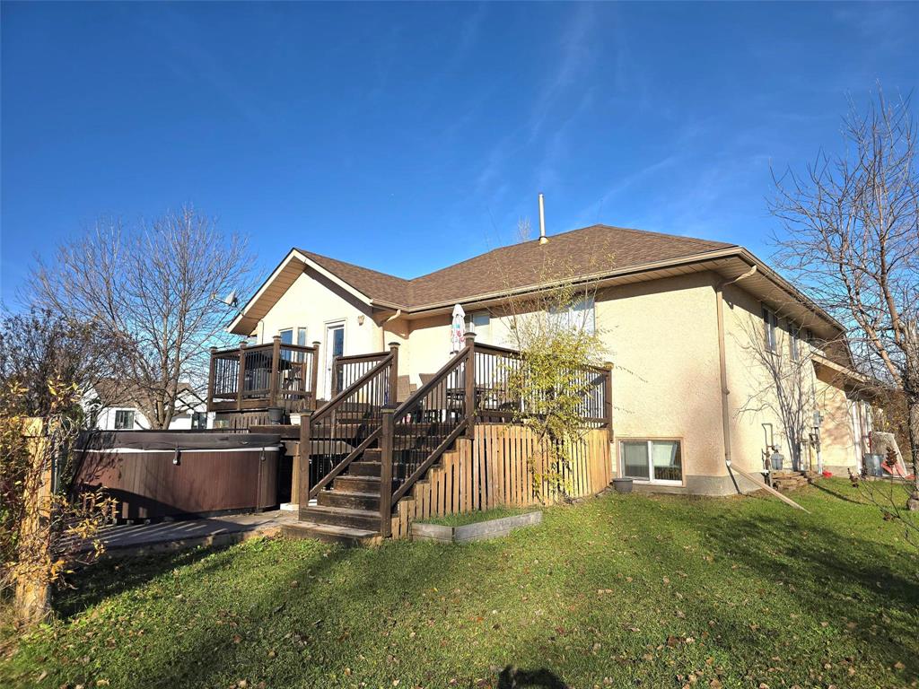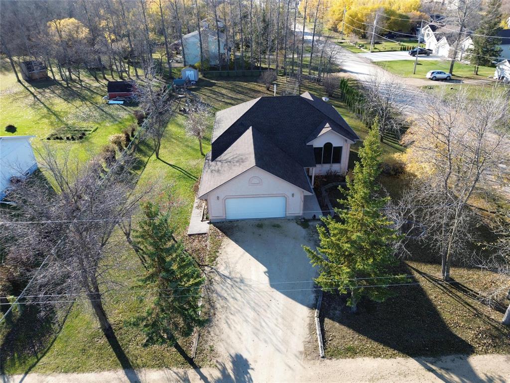 Showings Start Now, Offers Presented Nov. 5th. Gorgeous 4 Bedroom/3 Bath executive home in Gimli's Autumnwood Estates. Custom built on a prime corner lot location. Open concept kitchen with large island, quartz countertops (newer), chocolate kitchen cabinets, hardwood floors, large primary bedroom with walk in closet and 3 piece ensuite bathroom. Attached double car garage (insulated with separate heating system), huge deck with hot tub overlooks half acre private treed lot. Second driveway at the back (RV parking or room for another garage?), stone fire pit, partially finished basement with 4th bedroom (room for a 5th bedroom or office), 3rd bathroom downstairs is plumbed in, huge rec room with space for a pool table and media room. Close to shopping and schools. Natural gas forced air furnace, central A/C, HVAC, town sewer, private well, two fridges, and so much more! Priced to sell. Click link below picture for virtual tour and book an appointment to see it in person. Easy to show, shows amazing, MUST SEE exciting listing. Don't miss out.