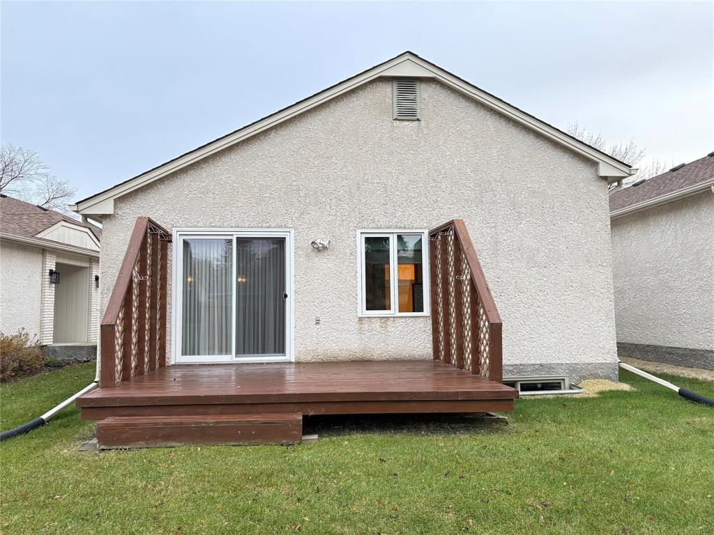 All offers please leave open 48 hours. Welcome to Easy & Comfortable living ! A Bungalow Condo with double attached garage with man door, nestled in the sought after community of Charleswood. This 1100 SF, move in ready Condo, offers the perfect blend of comfort & style. As you enter the foyer, the main floor has a spacious Kitchen with an abundance of cabinets and white appliances. The spacious living/dining room combo, has a Patio door that leads to a wood deck. This Condo features a Large primary bedroom with a walk in closet & 4 piece en-suite. The second bedroom is spacious and close by and 4 piece main bathroom. This Condo has a H/E Gas furnace, Central Air, Gas Hot water Tank and a sump pump(2022). Upgrades include furnace & Central A/C (2021), patio door (2024), some windows (2021 & 2024). The desirable location, near shopping, public transit and golf courses, make this property a true gem. Move in and enjoy Bungalow living, without cutting the Grass and shoveling the Snow ! The Bonus is, in this complex, it has access to, an in Ground POOL, for your Summer enjoyment ! *2 small pets allowed.*