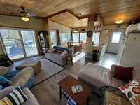 Fantastic Location! Fantastic View! This WATER VIEW 720 square foot solidly built cottage with a wide open plan makes great use of space, combining function and beauty. STEPS FROM THE MAIN BOARDWALK AND BEACH, With 2 spacious bedrooms, 3 piece bath, baseboard heat, and galley style kitchen, divided from the sunny dining area by a counter you can pull up to. Beautifully renovated, with vinyl plank Floors, Updated bath, newer shingles, newer windows, Large Front and rear decks, and a large garden door from the rear deck to the primary Bedroom. There is even a bunkhouse with a lake view for extra guests! Mostly furnished, so all you need is you!! An absolute must see!