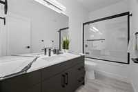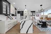 SS Now! Offers reviewed as received. Open House Sat–Sun ( Nov 8 & 9), 2–4 PM. Welcome to this quick possession, brand-new 2-storey home showcasing modern elegance and thoughtful design. Featuring 4 spacious bedrooms, 3 full bathrooms, a loft, and a convenient side entrance to the basement for future development. The chef-inspired kitchen boasts soft-close glossy cabinets, a quartz waterfall island, a spice kitchen with pantry, and quartz countertops in both kitchen and baths. Enjoy premium finishes throughout, including black plumbing fixtures, designer black lighting, handles, locks, and hinges. The main floor offers soaring 9’ ceilings, luxury flooring in whole house, and a stunning built-in entertainment wall in the open-to-above living room. Upstairs includes a beautiful primary suite with walk-in closet and tiled shower, two additional bedrooms, a loft, glass railings, and second-floor laundry. The double attached fully insulated garage features an 8’ door and extended driveway. Conveniently located near new schools, transit, parks, and all amenities. All measurements are approximate (+/- jogs).