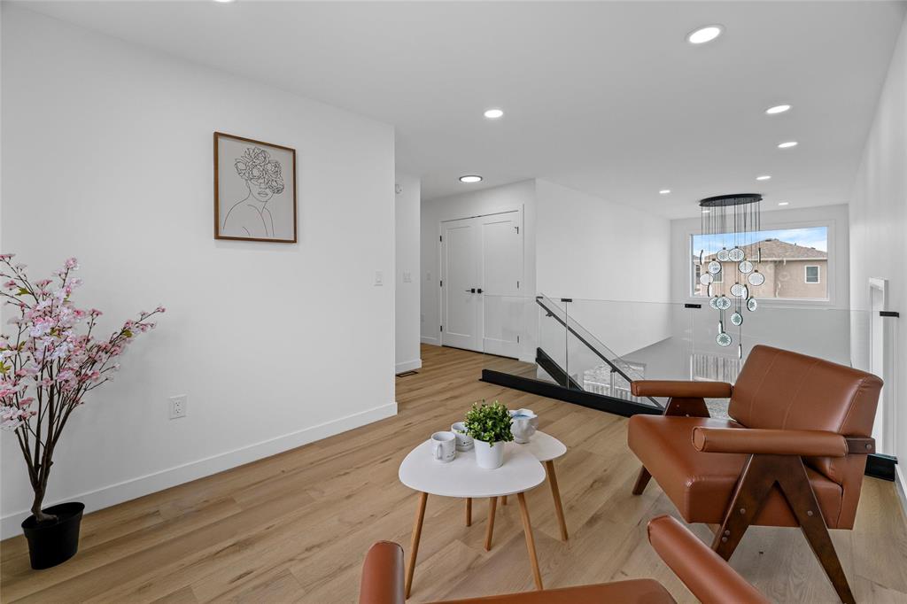 SS Now! Offers reviewed as received. Open House Sat–Sun ( Nov 29 & 30), 2–4 PM. Welcome to this quick possession, brand-new 2-storey home showcasing modern elegance and thoughtful design. Featuring 4 spacious bedrooms, 3 full bathrooms, a loft, and a convenient side entrance to the basement for future development. The chef-inspired kitchen boasts soft-close glossy cabinets, a quartz waterfall island, a spice kitchen with pantry, and quartz countertops in both kitchen and baths. Enjoy premium finishes throughout, including black plumbing fixtures, designer black lighting, handles, locks, and hinges. The main floor offers soaring 9’ ceilings, luxury flooring in whole house, and a stunning built-in entertainment wall in the open-to-above living room. Upstairs includes a beautiful primary suite with walk-in closet and tiled shower, two additional bedrooms, a loft, glass railings, and second-floor laundry. The double attached fully insulated garage features an 8’ door and extended driveway. Conveniently located near new schools, transit, parks, and all amenities. All measurements are approximate (+/- jogs).